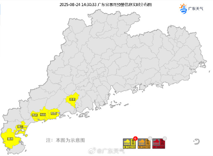 · 雷州、湛江、茂名、电白、阳西、恩平暴雨黄色预警生效中;