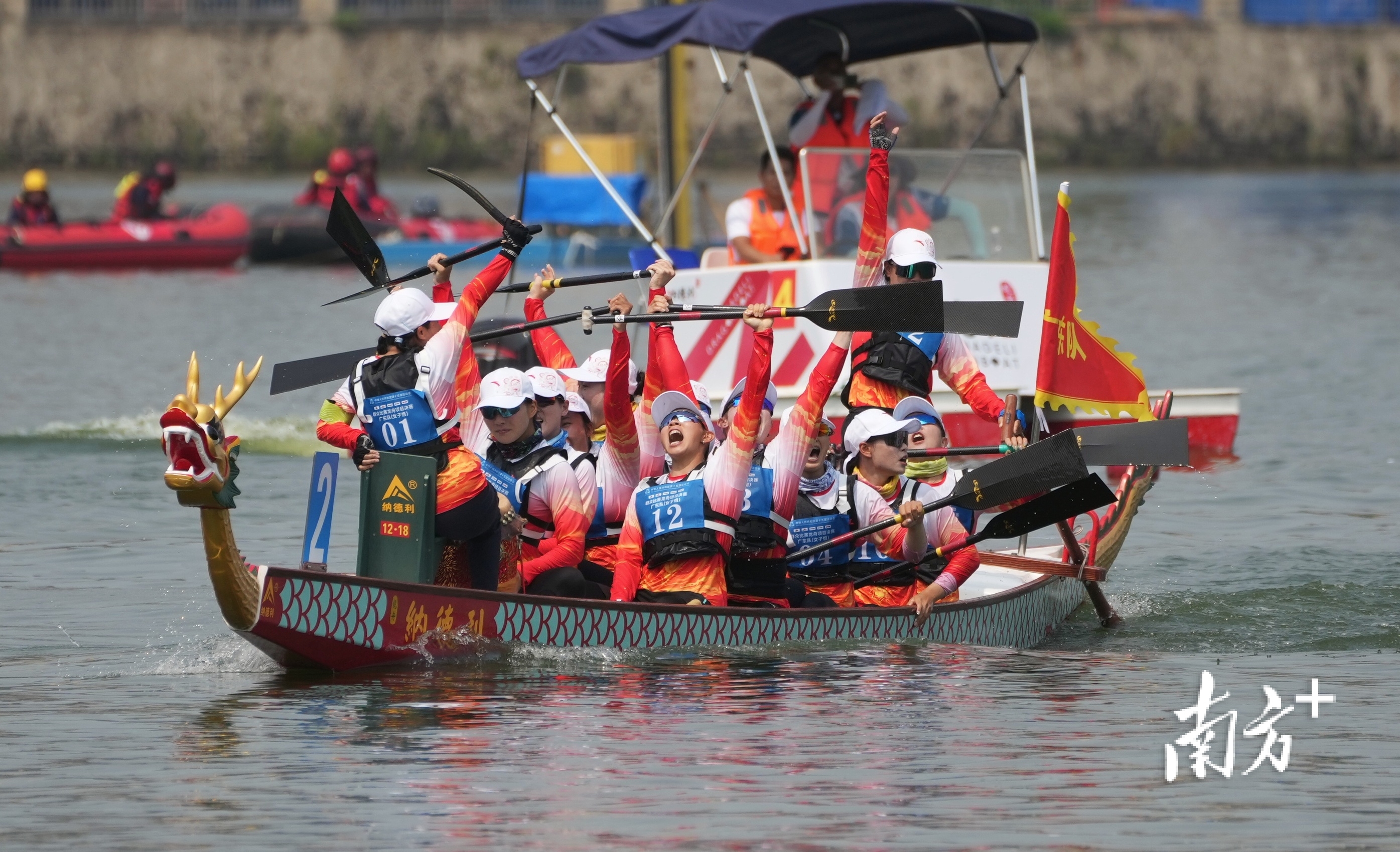 5日中午,首日赛事金牌全部诞生。广东代表队勇夺女子组(12人龙舟)、男子组(22人龙舟)、混合组(22人龙舟)100米直道赛共3枚金牌。