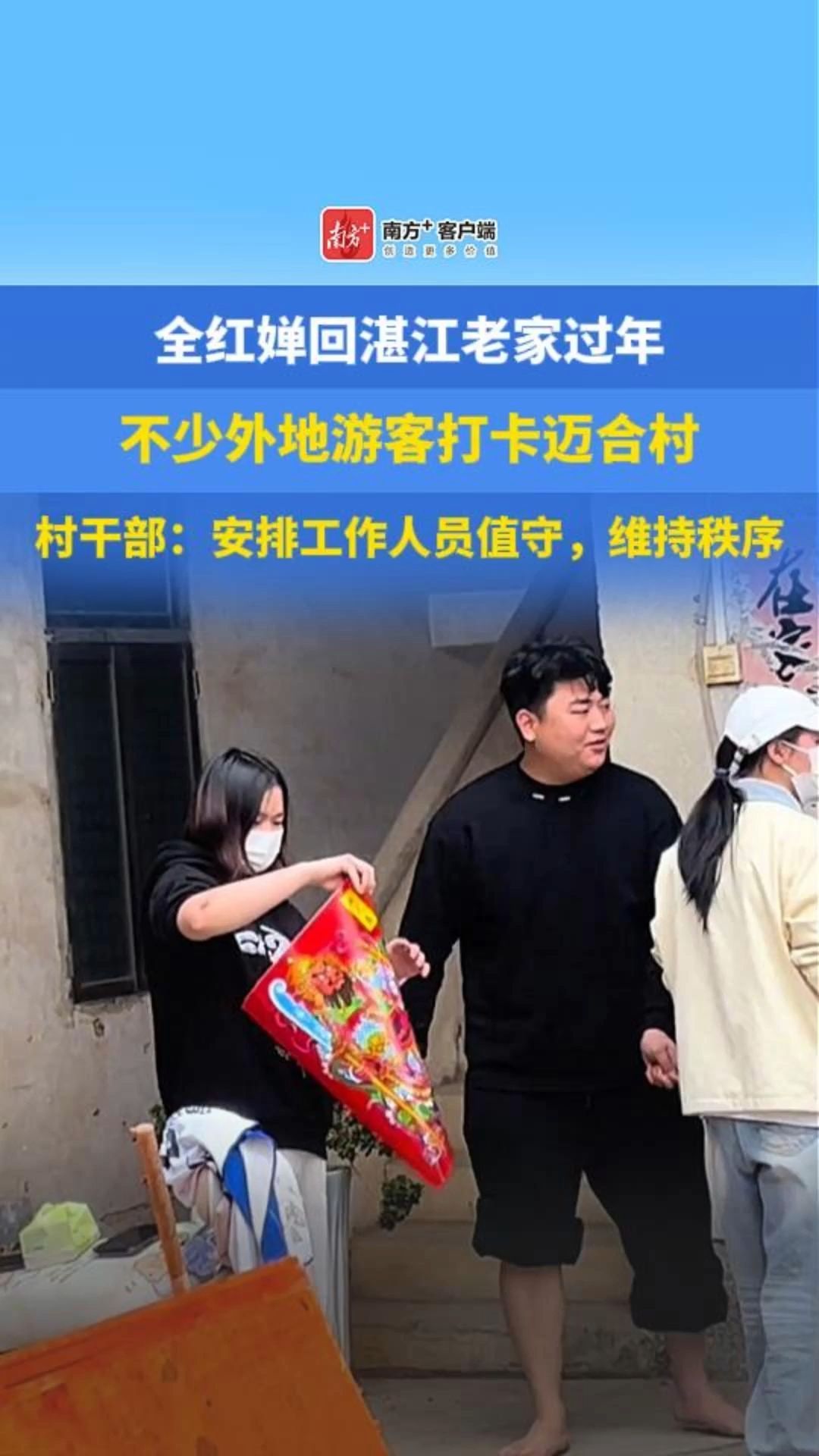 跳水运动员、奥运冠军全红婵今年在家乡广东湛江过春节。不少游客来到全红婵家乡湛江迈合村游览。迈合村村干部称,村内安排了工作人员值守维持秩序。详情>>
