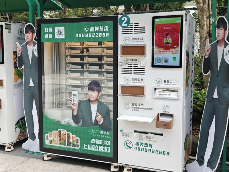 在这一风口下,沙拉食刻于2020年应运而生,主打线上下单、写字楼智能餐柜自提的新零售模式。从2023年年底至2024年,品牌先后获得1亿元A轮融资、5000万元A+轮融资,累计融资达1.5亿元。充裕的资金让品牌开启大规模扩张,重金邀请周杰伦担任代言人。