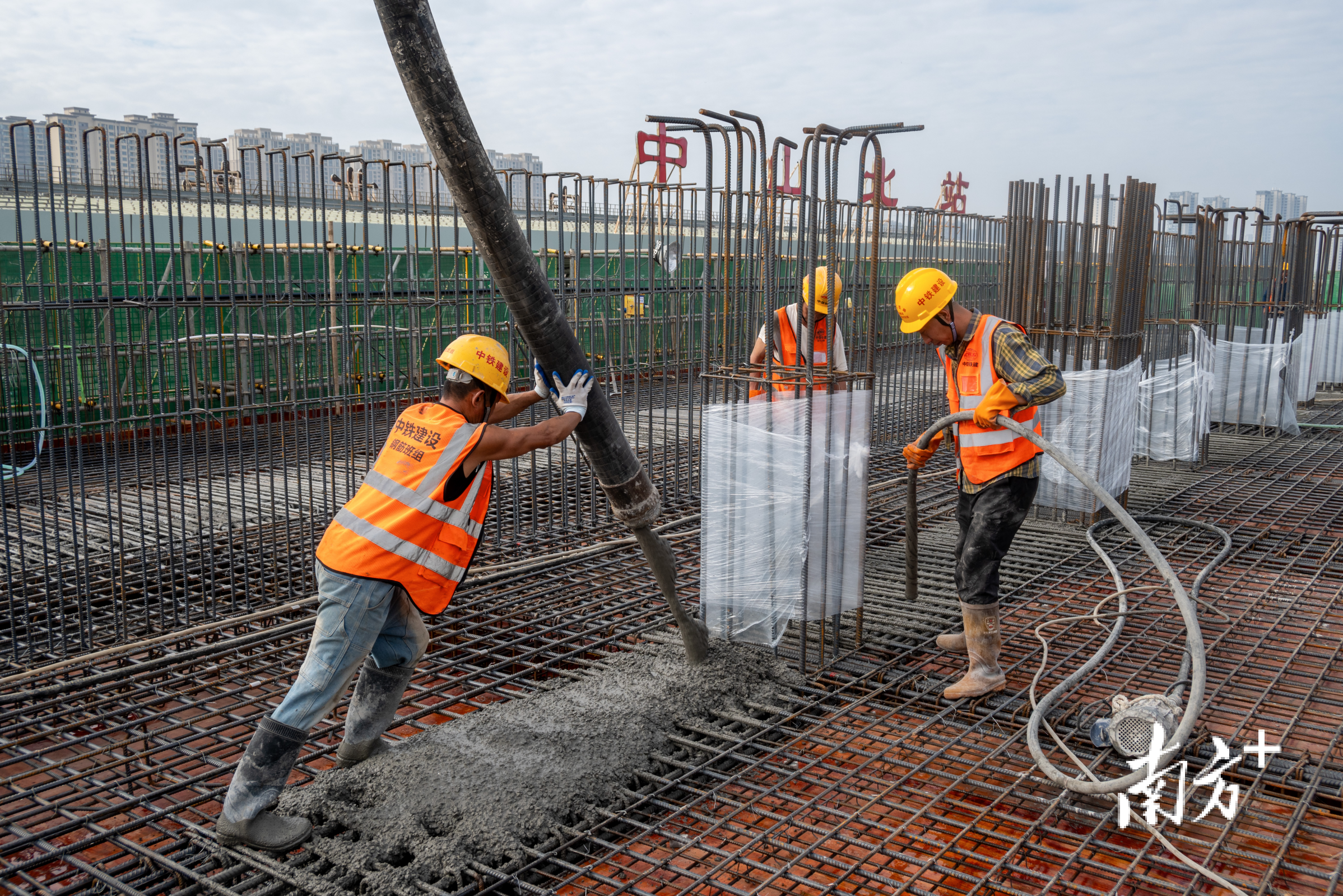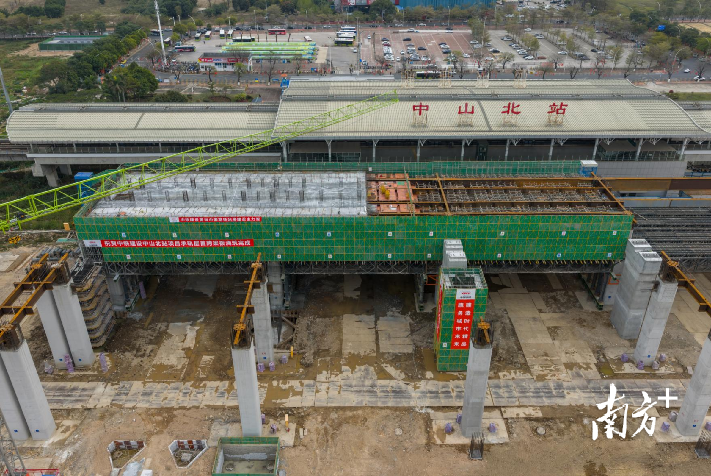 “承轨层是未来列车行驶的核心平台,工程整个承轨层长近230米、宽23米,首跨浇筑成功,将为后续17跨施工打下坚实的基础。”中铁建设中山北站改扩建工程生产经理向新宇介绍。目前,工程已全面进入主体结构与钢结构施工“双线推进”阶段,两项关键进度均完成约20%。