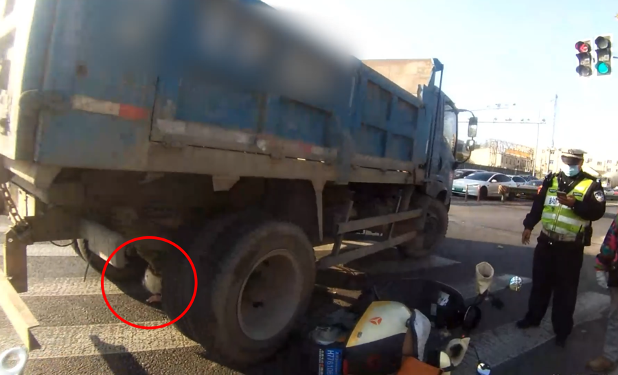 交警迅速到场处置,救援人员在车底发现了电动自行车驾驶人杨女士,其面色煞白却意识清醒,经送医检查,无生命危险。