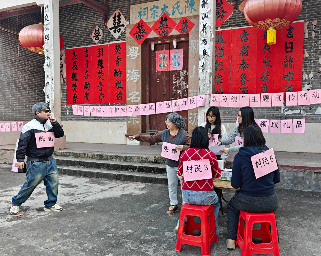 祠堂前的反诈小剧场。