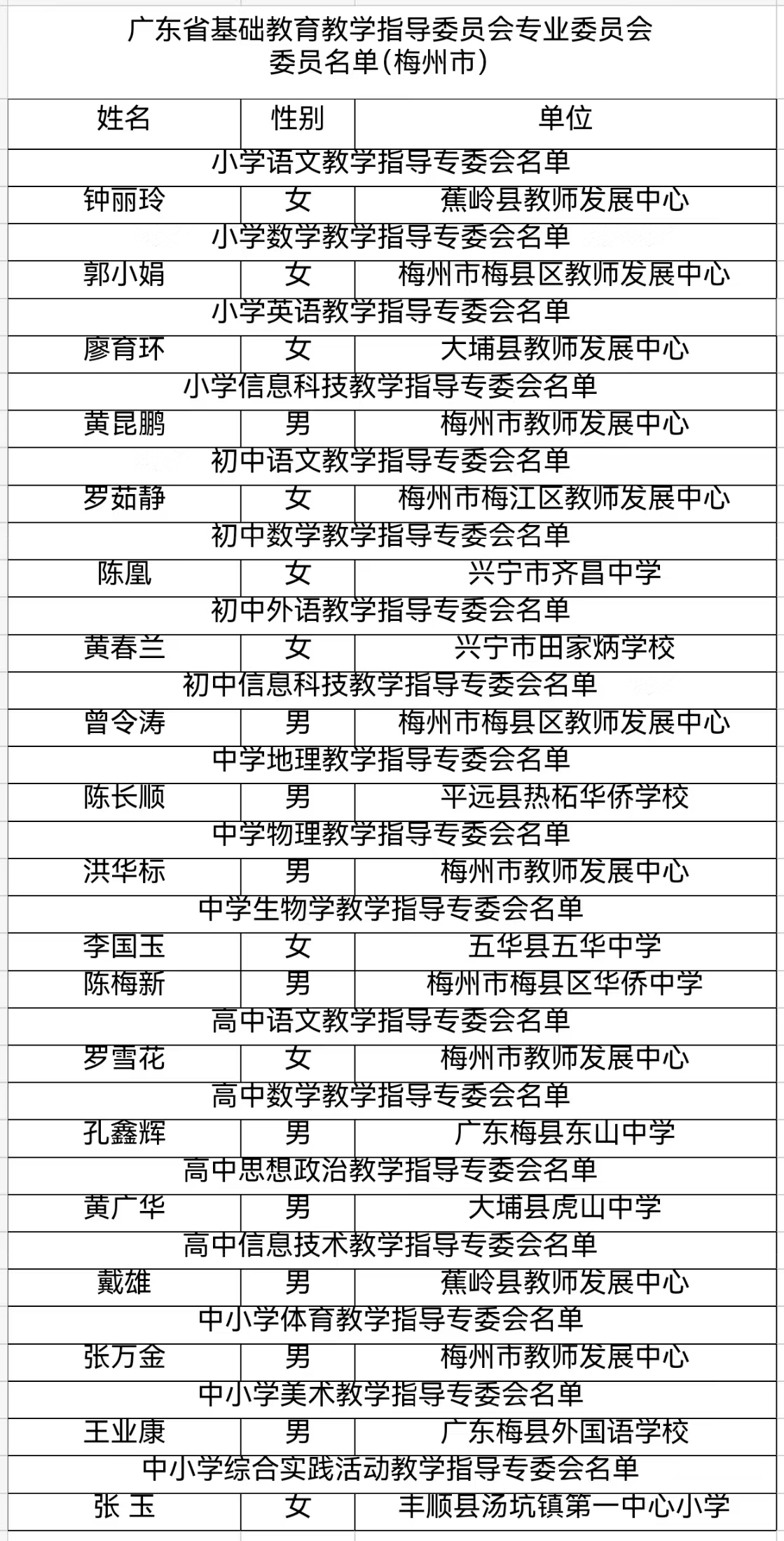 据悉,在各地市教育行政部门、有关高等学校、直属中小学等相关单位广泛推荐基础上,经认真遴选和社会公示,省教育厅确定了小学语文等34个专委会委员名单,其中梅州有19名教师入选。