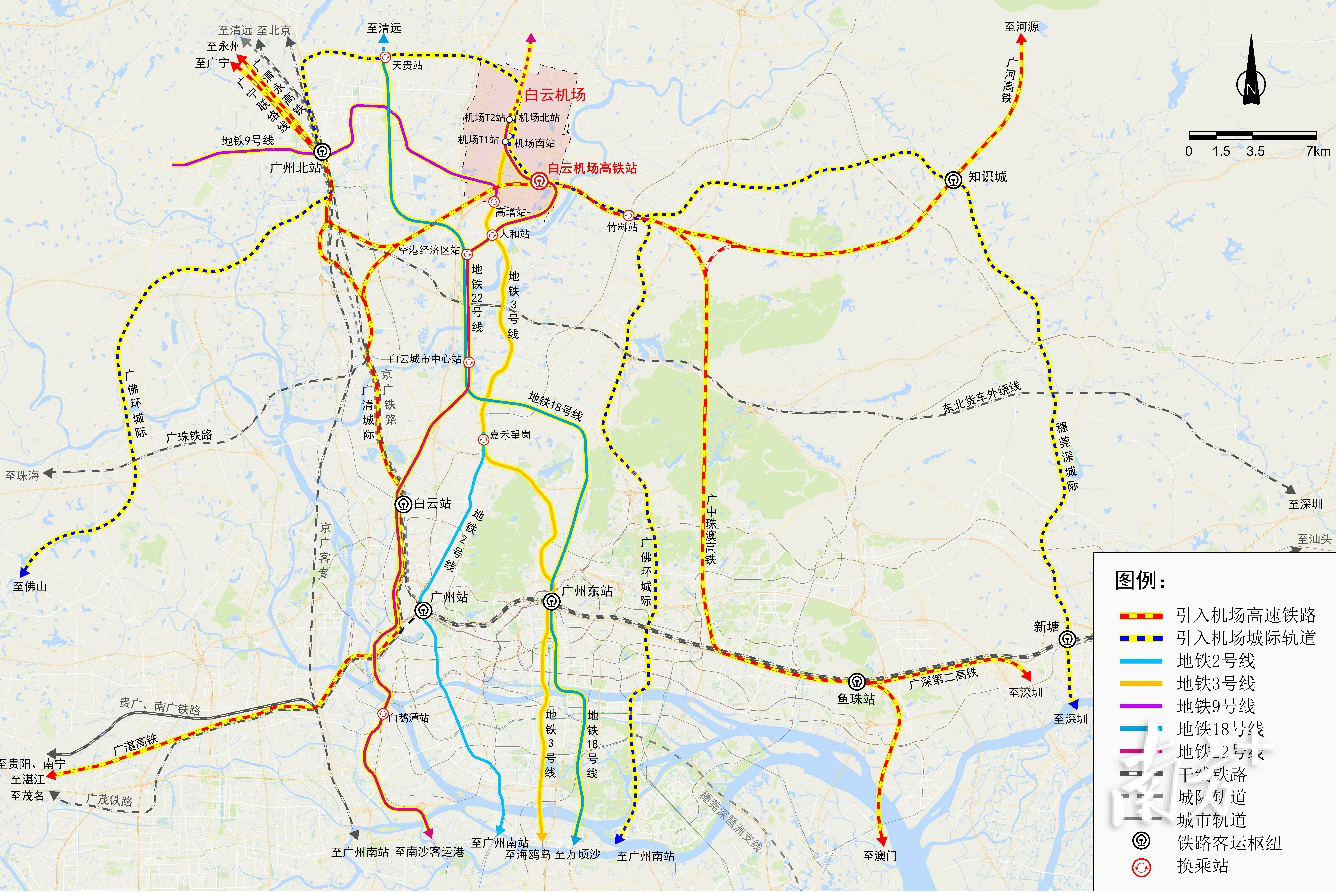 白云国际机场综合交通枢纽整体交通规划(修编)——空铁联运示意图