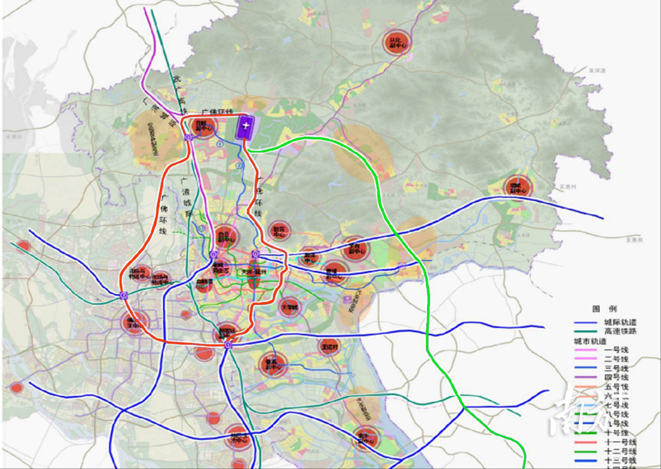 城际轨道加密——在广佛环城际、新白广城际等已建、在建轨道基础上,引入芳白城际、广花城际等2条城际轨道。