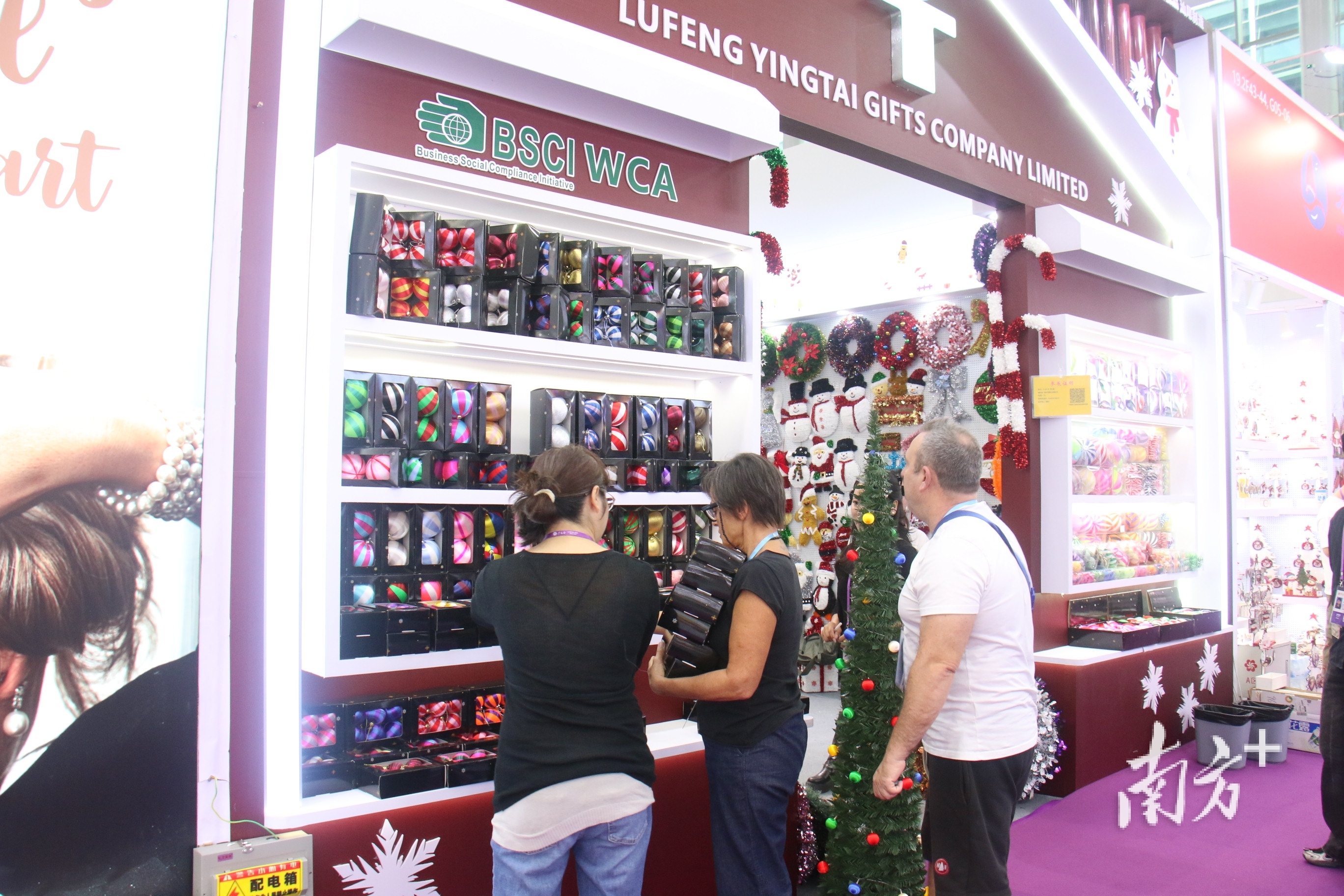 装饰精美的圣诞树、憨态可掬的企鹅、笑容可掬的圣诞老人……在陆丰市怡雅工艺品有限公司的展位,圣诞节氛围十足,五光十色的节日灯饰让人眼花缭乱。