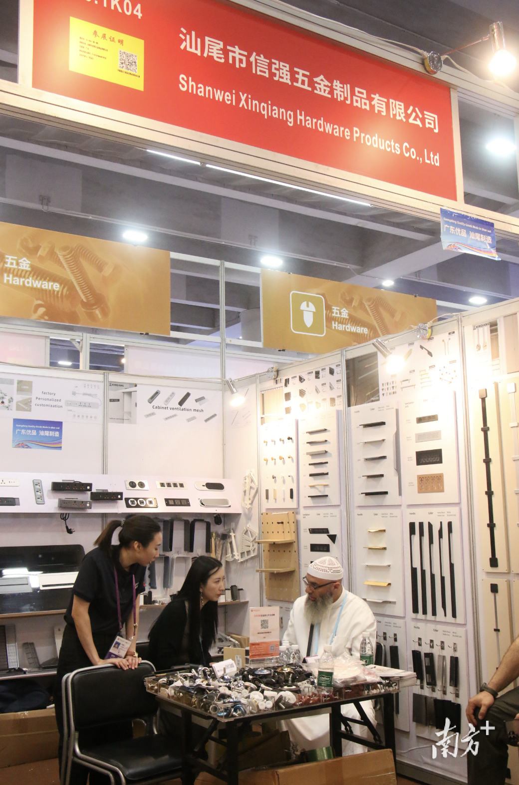 在五金展区,来自陆丰市甲子镇的汕尾市信强五金制品有限公司展位吸引了众多海外客商。“30年经验是我们的底气。”该公司负责人范伟斌表示,企业过去以内销为主,今年首次瞄准广交会开拓外贸,“中东客户对定制化需求强烈,我们已新增无线充电插座等功能性产品。”