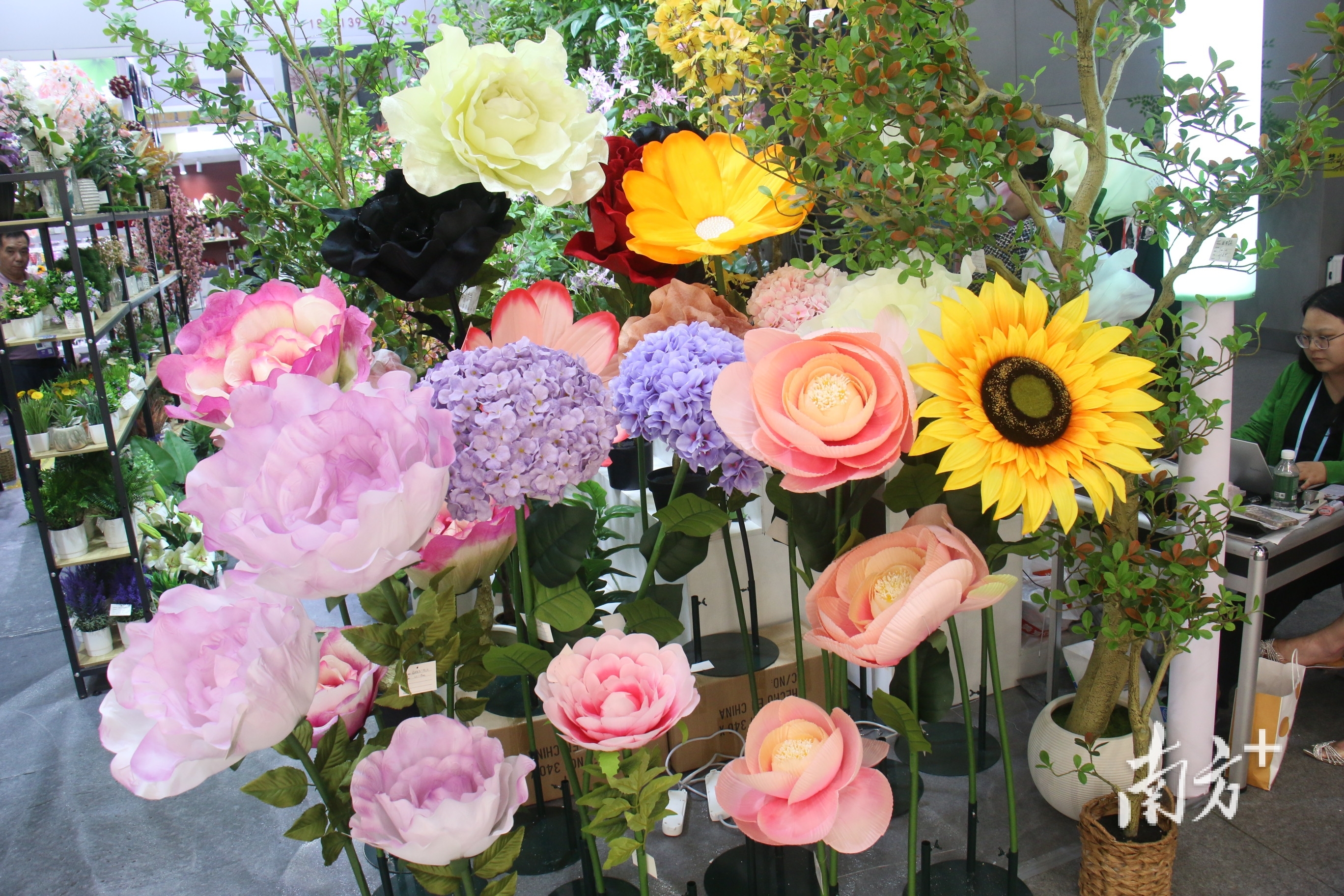 各色鲜艳的仿真花、栩栩如生的人造绿植、设计新颖的加湿器……走进陆丰市永盛工艺品有限公司展位,宛若置身于“绿野仙踪”,路过的境外采购商纷纷驻足拍照打卡。