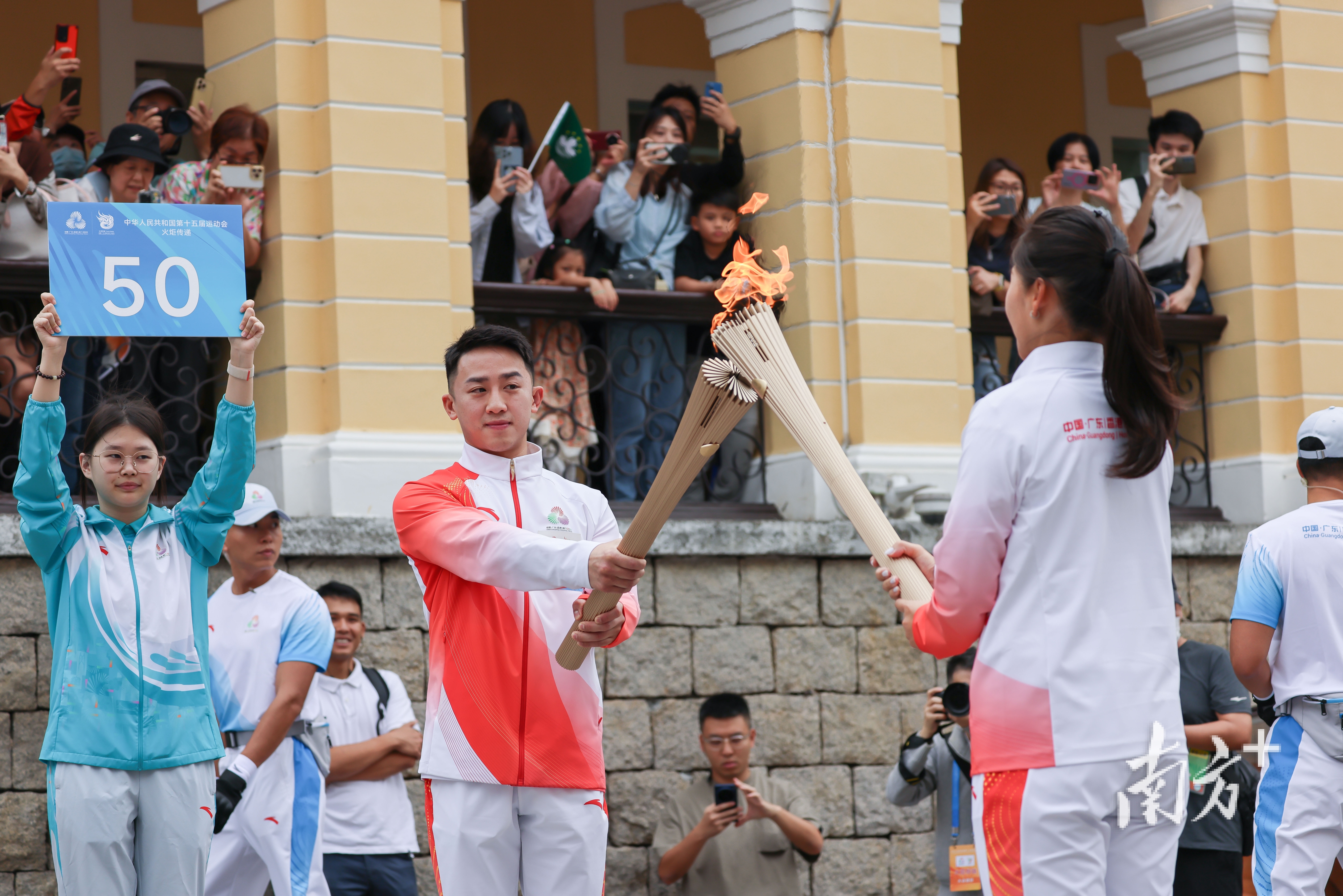 11月2日,十五运会澳门站火炬传递活动举行。澳门赛区火炬传递路线全长约2.6公里,共50棒火炬,由政府总部起步,终点设在大三巴。路线串联了澳门多个具有代表性的历史文化地标,充分展示了中西文化的深度融合与和谐共存,体现澳门多元和谐的城市精神。