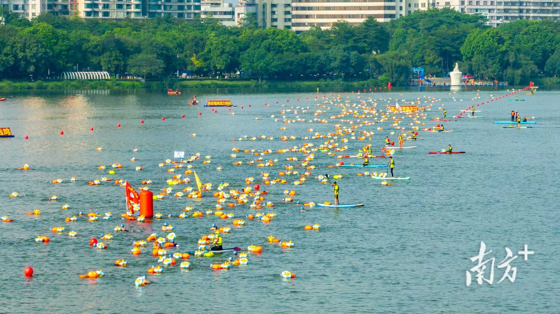 在清远市清城区凤城广场对出北江水域,一位位“泳士”先后跃下北江,开始跨越1600米的横渡。10月12日,清远市连续第三年举办横渡北江活动,2900名游泳爱好者排成30余个方阵参与。此时北江沿岸,围观的游客更是早已围得水泄不通。