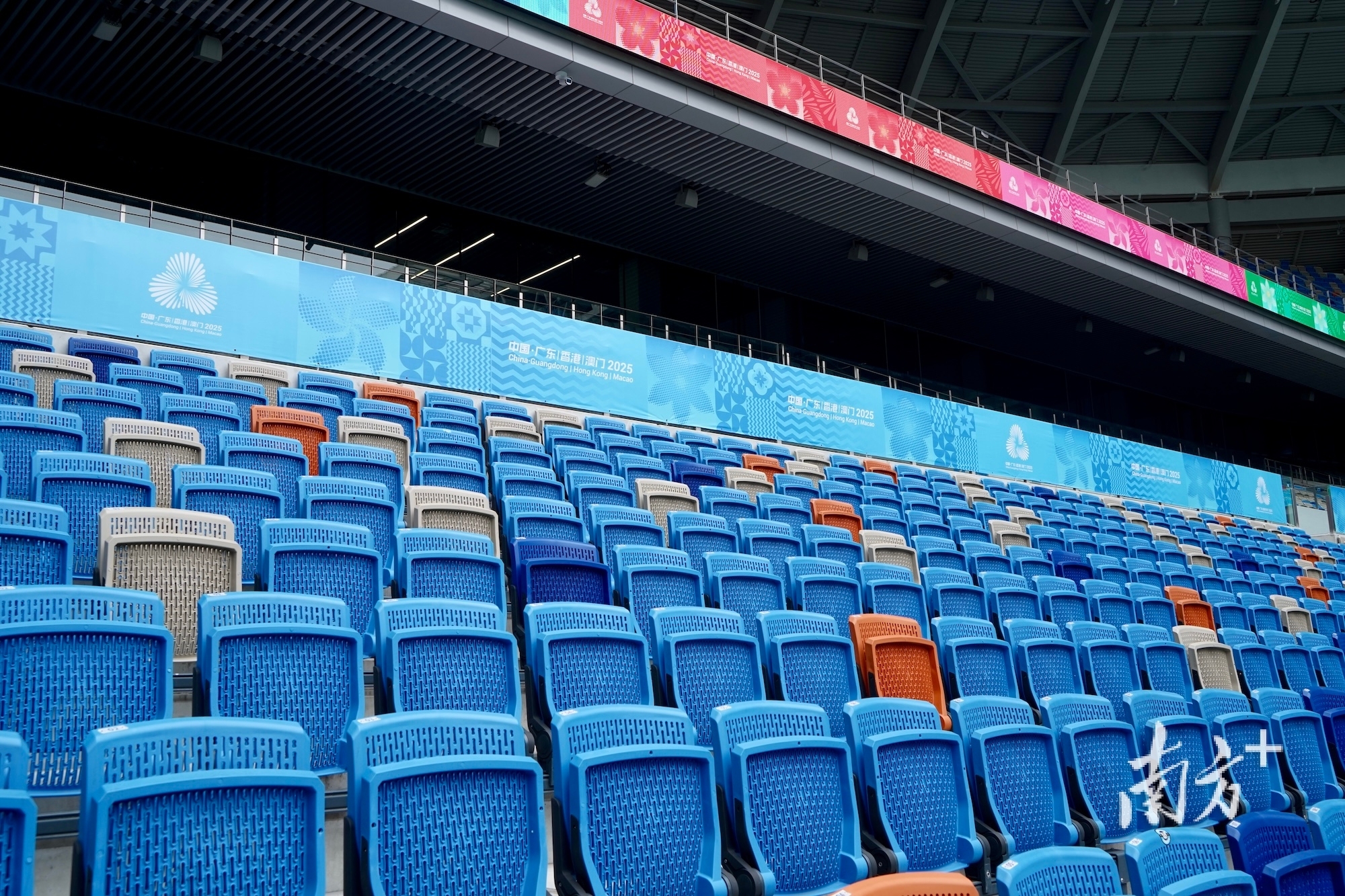 吕佩蕾还介绍道,体育场看台的座椅均采用镂空式设计。功能上,该结构不易积水,还能在炎热天气下有效降低观众的体感温度,座椅的镂孔背面以网络式加强筋加固,结合气辅式加厚座圈,其承载力及韧性都强于普通座椅,可以达到“久坐不累”的效果。这款座椅为深圳企业自主设计生产,曾获2022年度德国红点产品设计奖,也是国内体育设施设备行业获得的首个红点设计大奖。