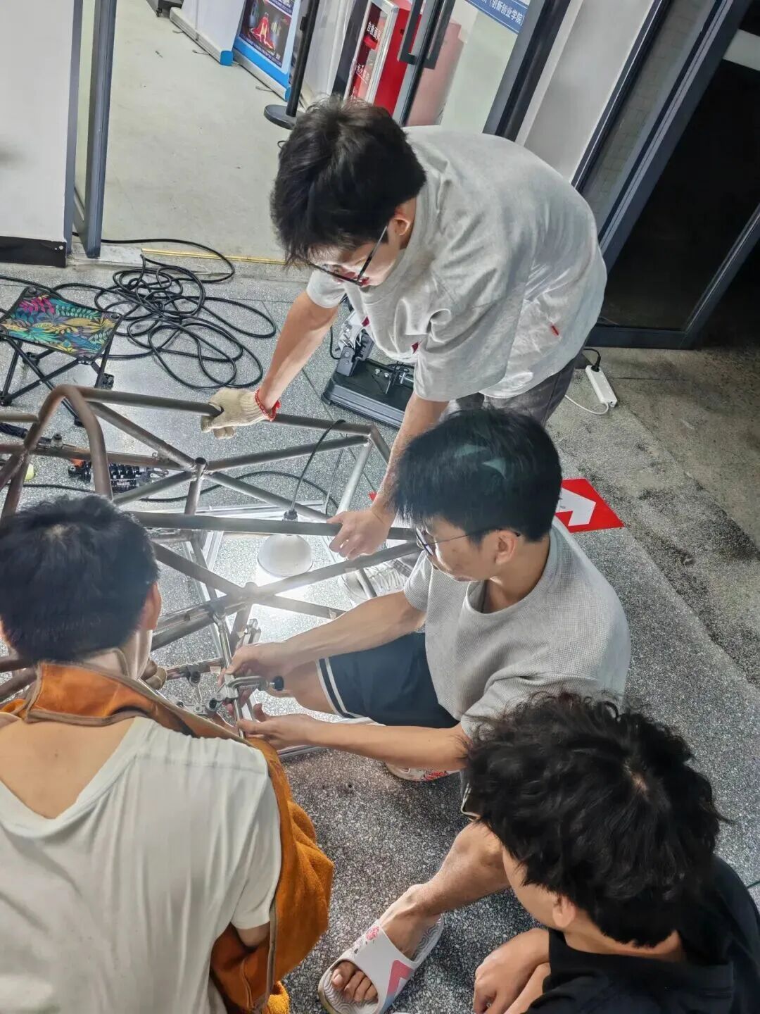 没有基础、没有伙伴、没有场地、没有资金,一切只能靠自己。车队初创时的3名成员,利用暑假待在学校实验室3平方米的小房间里,依靠网上教程,从零开始学习软件安装和绘图,尝试3D打印模型、搭建车架。