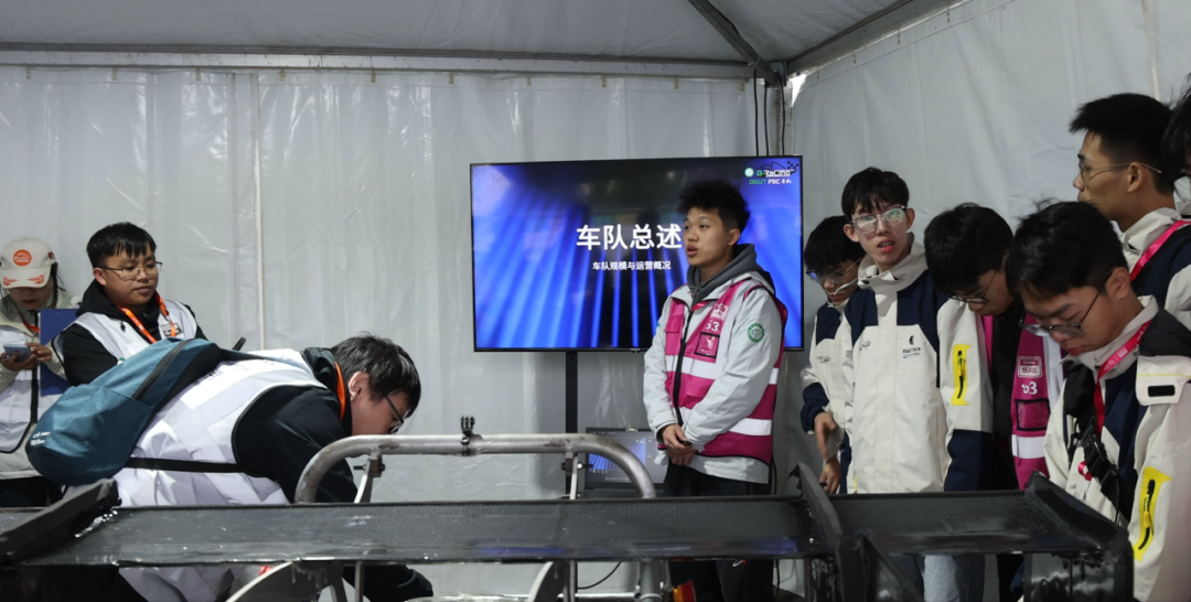 技术答辩阶段,大风吹斜展板,队员们就排成一排在展板后支撑。场内,技术骨干清晰阐述赛车设计、从容应答裁判提问;场外,坚固的“人墙”凝聚成合力。