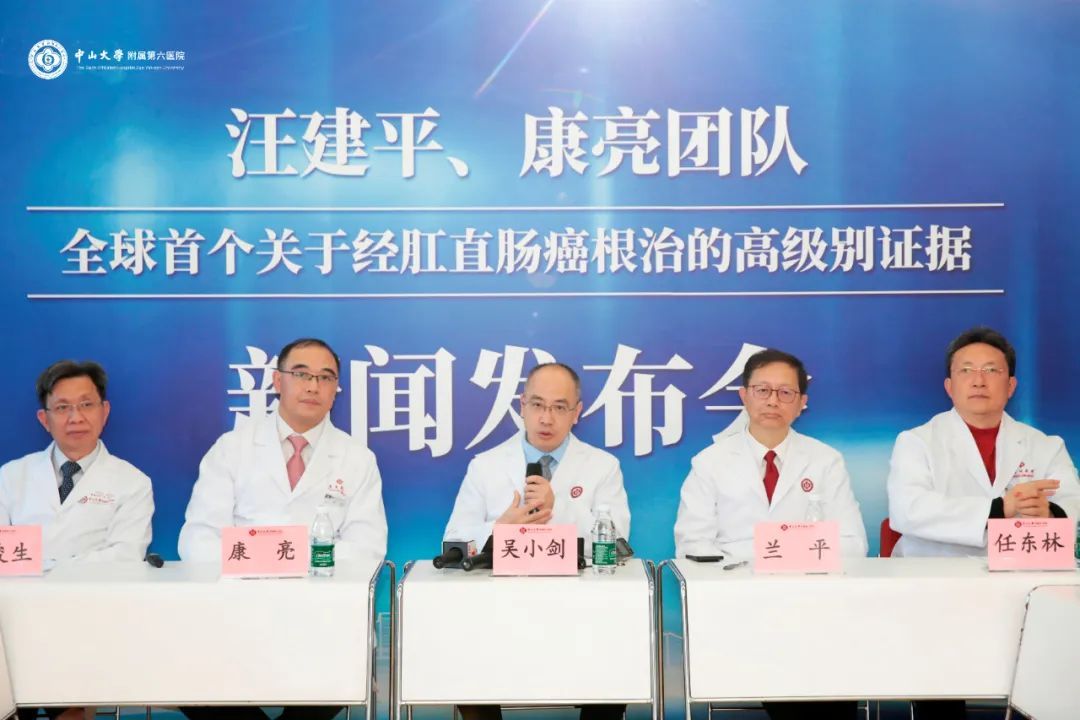 2025年1月24日下午,我院就该成果发表召开新闻发布会,我院院长、结直肠外科吴小剑教授,结直肠外科学科带头人兰平教授,胃外科学科带头人彭俊生教授,盆底肛肠外科学科带头人任东林教授,副院长、结直肠外科康亮教授,中山大学公共卫生学院凌莉教授,中山六院胃外科二区主任杨祖立主任医师,结直肠外科黄亮主任医师,结直肠外科刘华山副研究员,结直肠外科曾子威博士后等文章作者,接受省内主流媒体的20多名记者采访。会上介绍了研究背景及过程,基于该研究成果,与会者畅谈taTME在结直肠癌治疗方面的广阔前景。