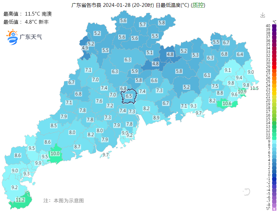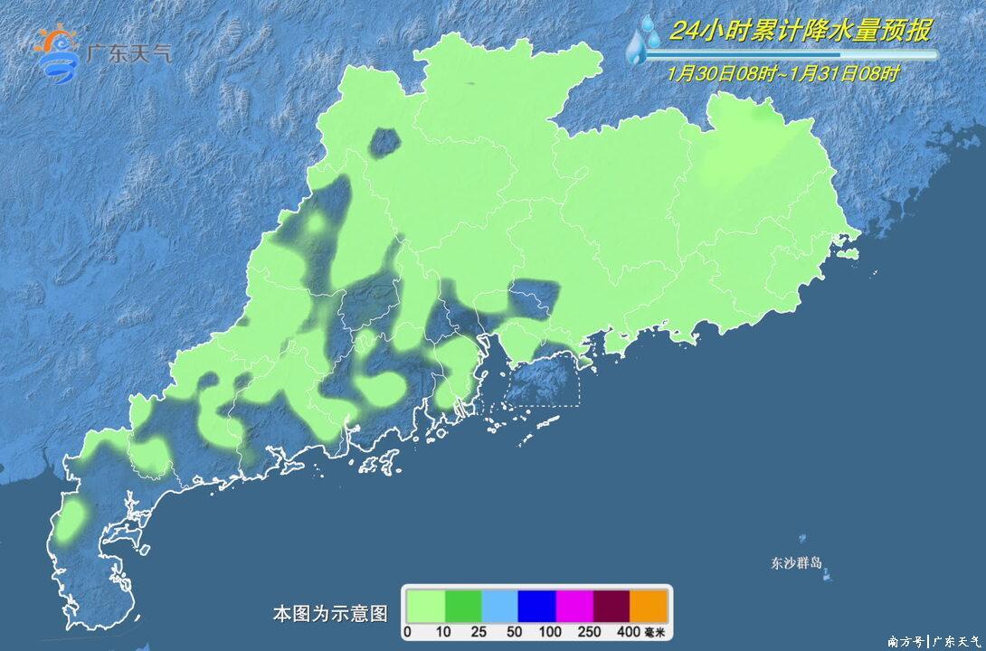 30日,粤北和珠三角北部有中雨局部大雨,其余市县阴天为主有小雨。最低气温:粤北市县9℃~12℃,南部市县14℃~18℃,其余市县12℃~14℃。