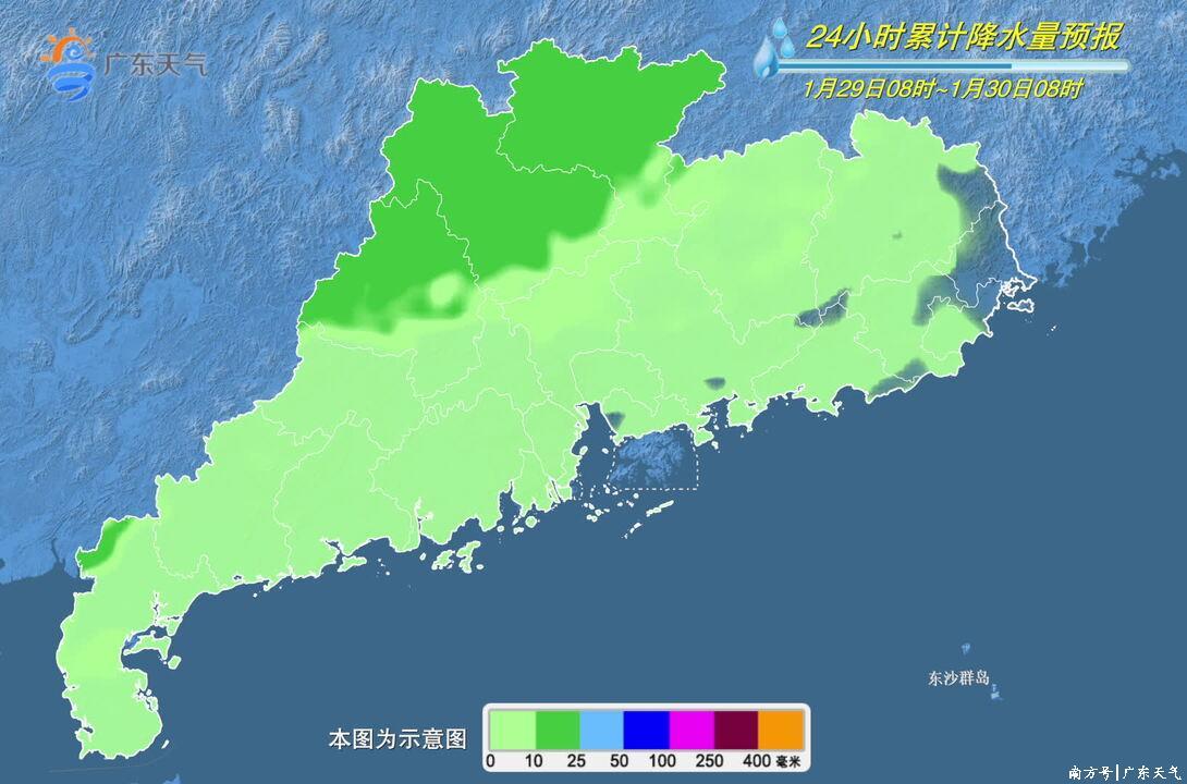 29日,西部市县阴天有小雨,其余市县多云天气为主。最低气温:粤北市县7℃~10℃,南部市县12℃~15℃,其余市县10℃~12℃。