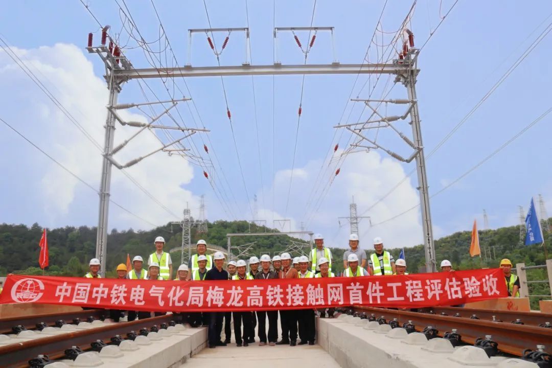 近日,新建梅龙高铁接触网设备首件工程——五华至龙川西区间Z5、Z5-1两个锚段验收评估顺利通过。