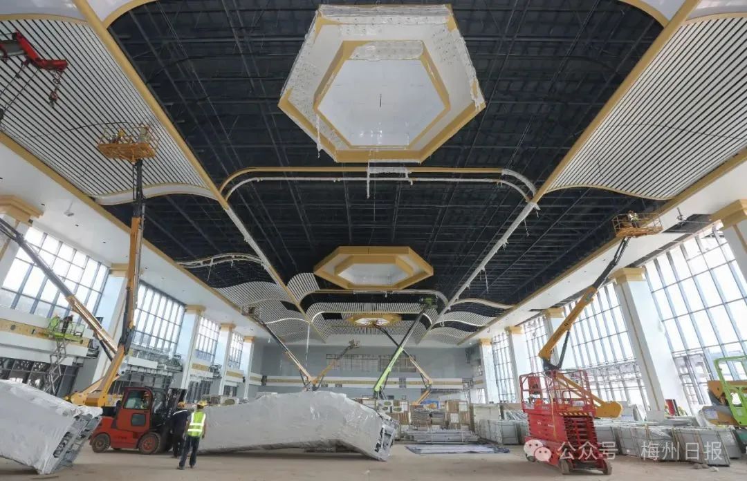 兴宁南站站房正在进行内部装修。(图源:梅州日报)