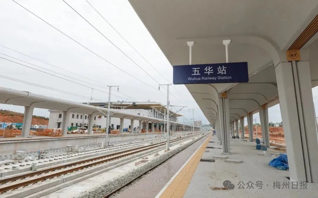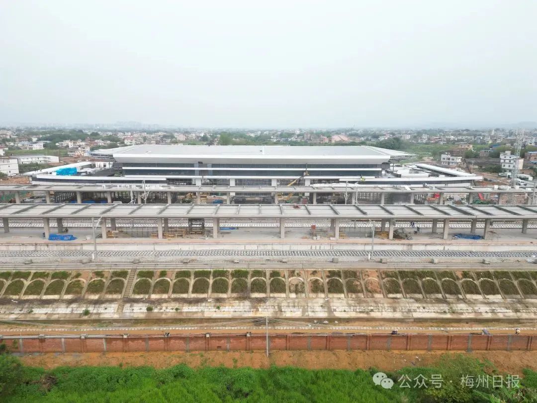 目前,兴宁南站主体结构、钢结构已全部完工,全面进入装饰装修和机电安装阶段;站台铺装已完成98%,预计6月底完成主体工程。