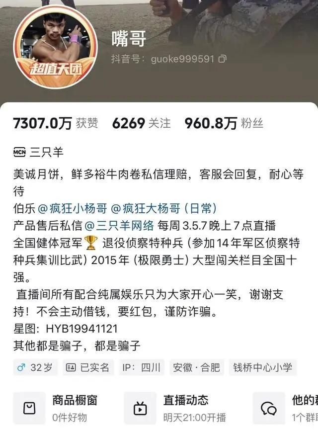 此外,大河报《看见》记者关注到,三只羊公司旗下知名主播“嘴哥”预约了11月3日晚上9点的直播,嘴哥目前粉丝数量为960.8万,这也将是他自9月12日以来首次开播,其账号信息中有“MCN三只羊”标识,三只羊公司客服称,目前暂未收到直播开播的相关通知。