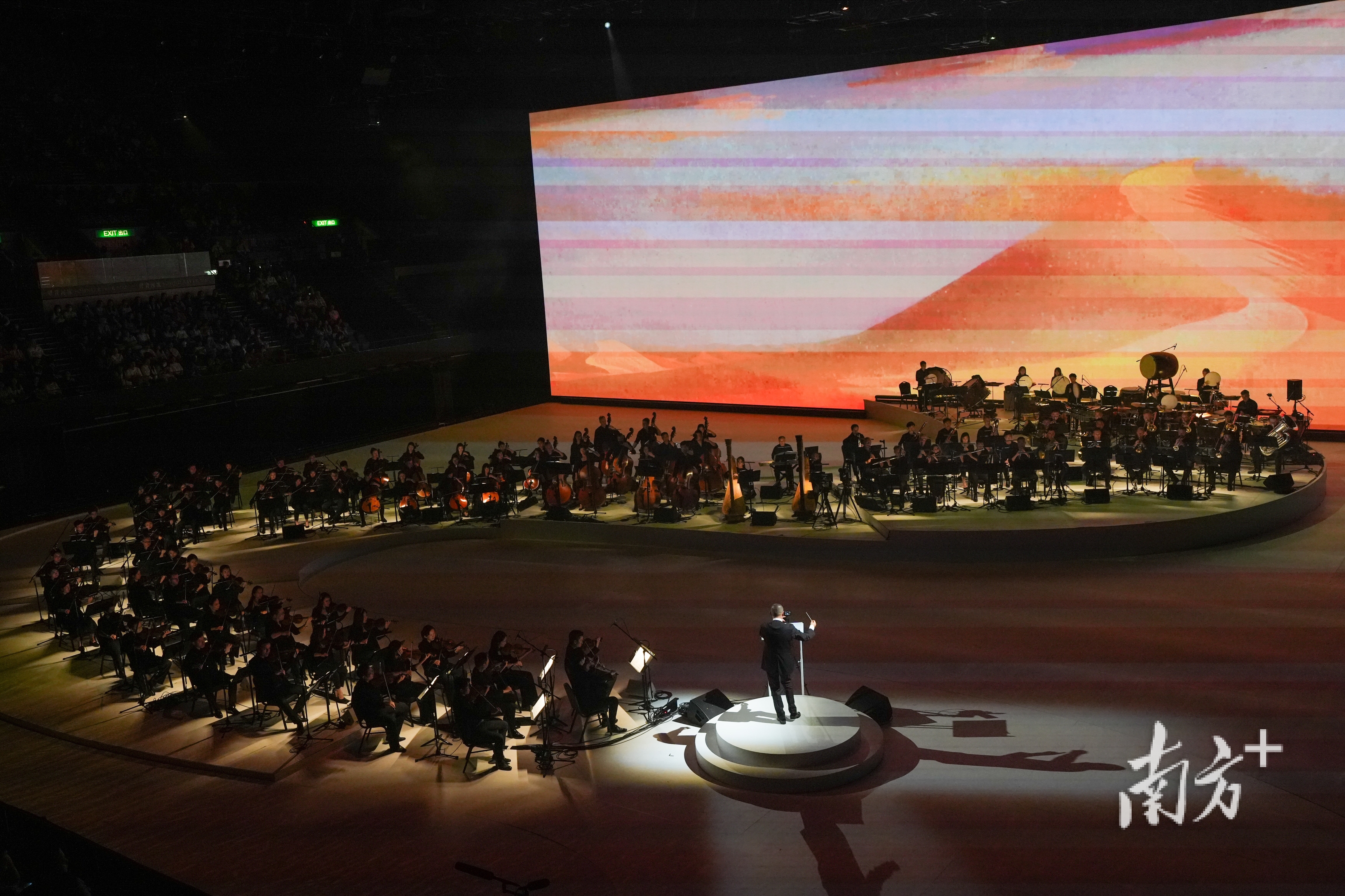 由香港管弦乐团、广州交响乐团、深圳交响乐团及澳门乐团组成的粤港澳大湾区文化艺术节管弦乐团在著名作曲家谭盾指挥下,联袂带来交响诗《声音河流》的世界首演。