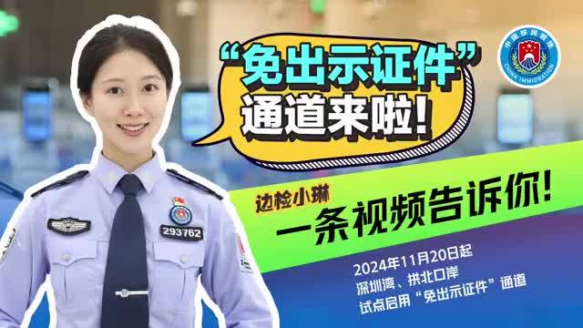 中华人民共和国出入境管理局15日发布公告,为进一步便利内地与港澳地区之间人员往来,提升通关效率,自2024年11月20日起,在广东省深圳市深圳湾口岸、珠海市拱北口岸,试点升级部分边检快捷通道,因私经常往来港澳地区人员可经“免出示证件”通道通行。
