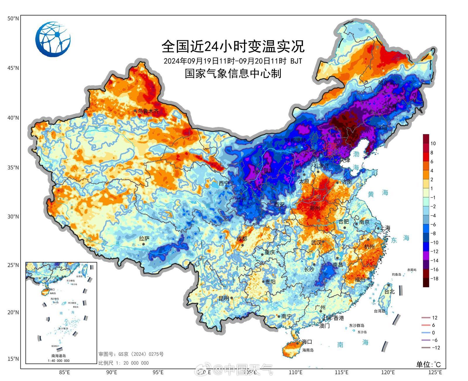 据@中国天气:20日降温的主场属于北方,西北、东北、华北部分地区降温降到“发紫”,11时局地气温相比前一日同时次猛跌16℃以上。北方人的秋裤可以翻出来了。
