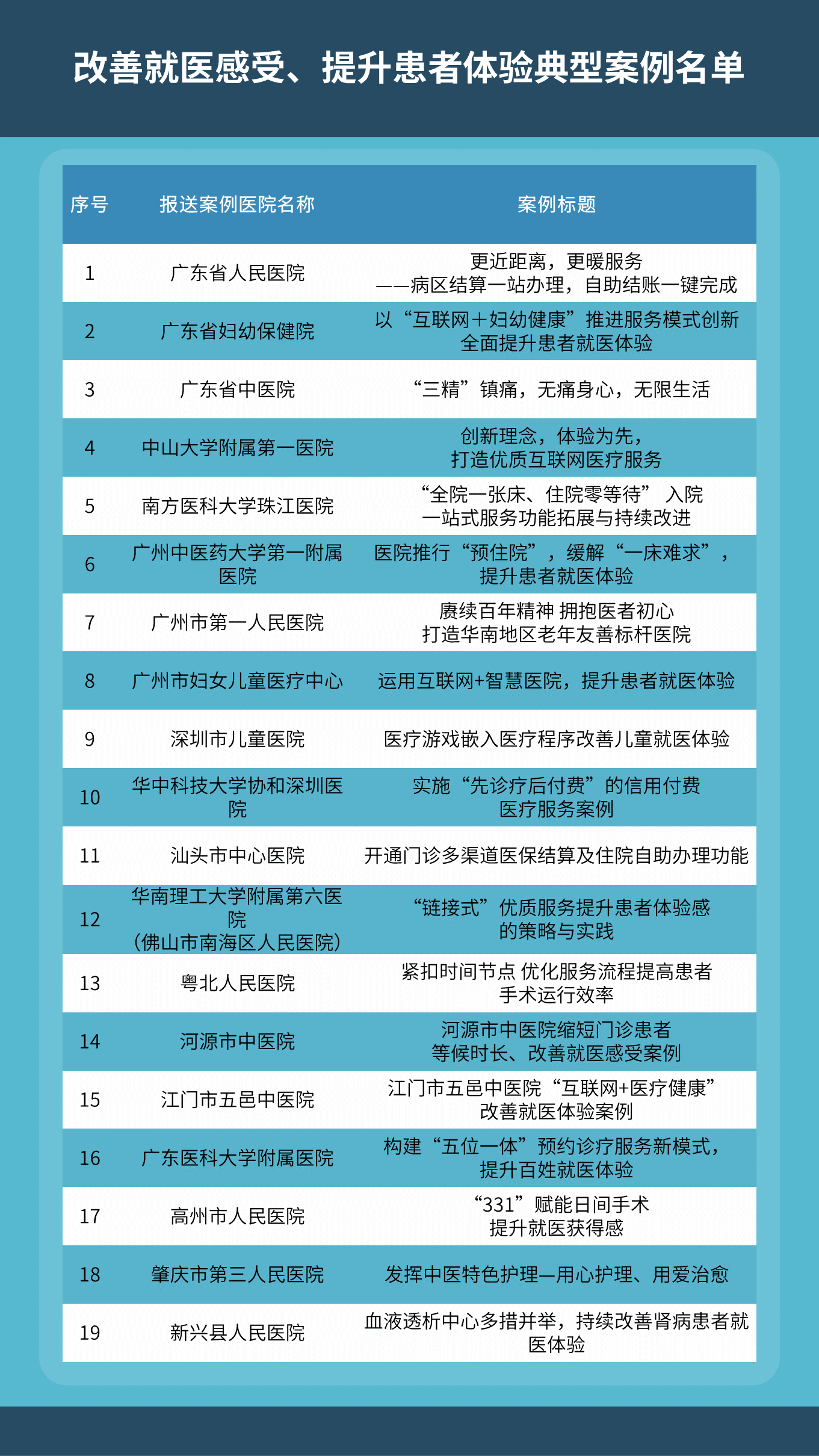 9月18日,广东省卫生健康委发布改善就医感受提升患者体验典型案例,省人民医院、省妇幼保健院、省中医院等单位报送的19个案例入选。