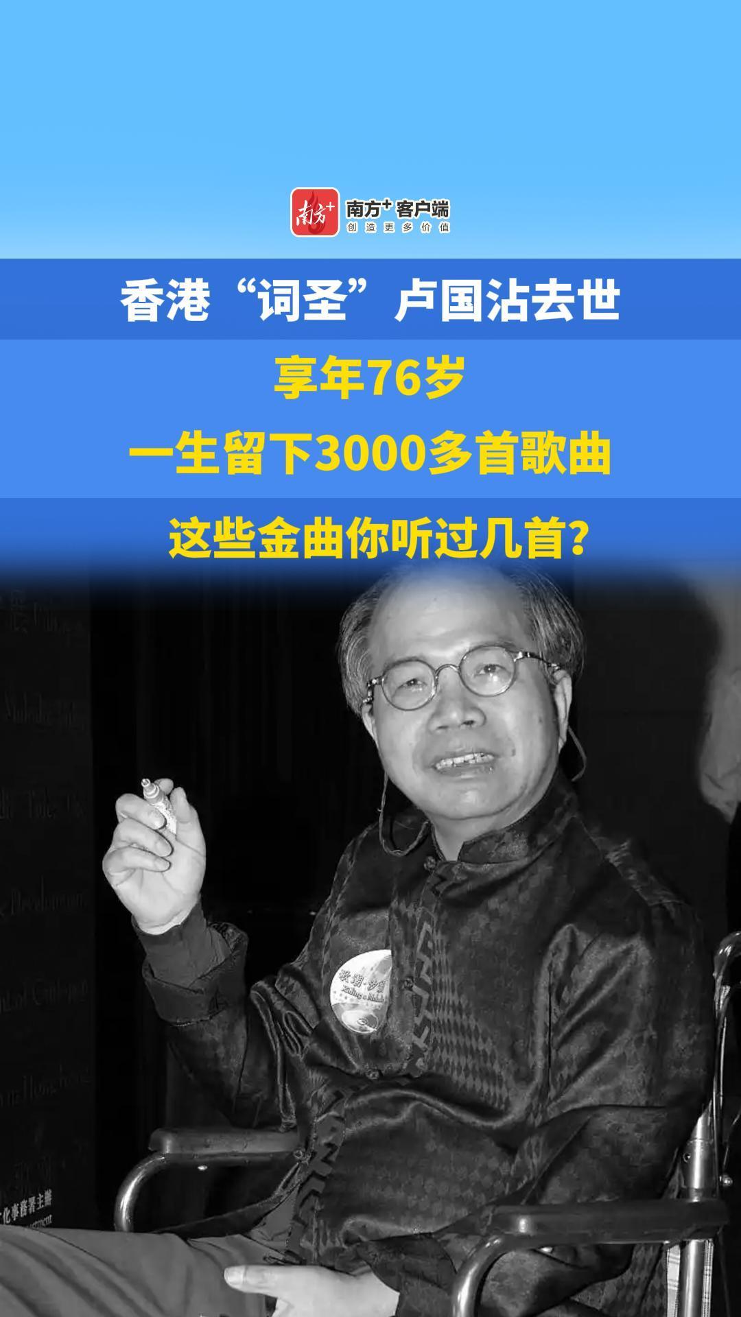 香港“词圣”卢国沾去世,享年76岁,一生留下3000多首歌曲