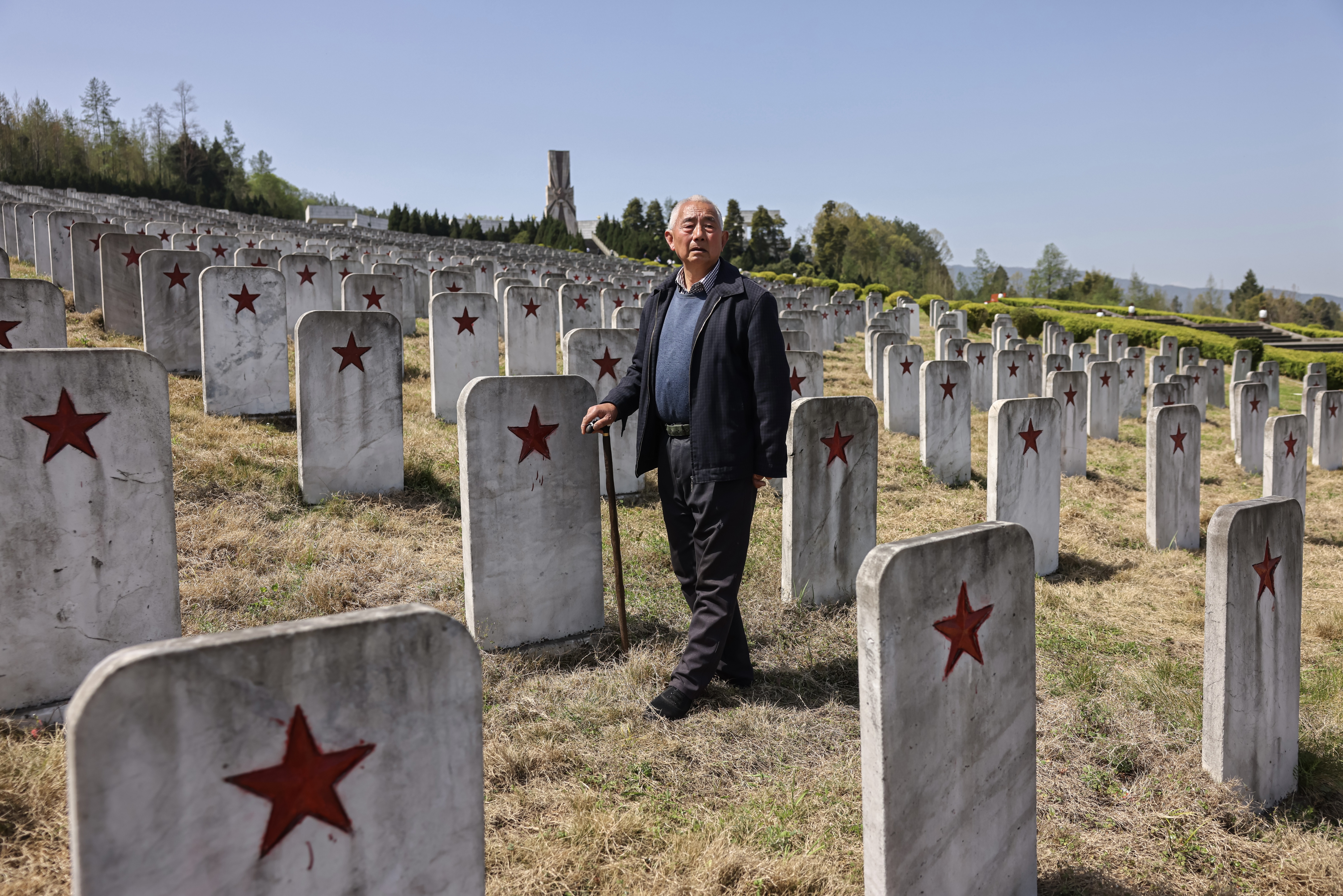 直到他76岁那年生病住院,医院发了病危通知书,“他有天精神很好,让我扶他到了陵园,坐在台阶上他就说,‘孩子啊,我老了,走不动了,你要经常来这里给他们扯扯草、扫扫叶子,你不知道,他们为了我们的好日子,受尽了痛苦的折磨。’”