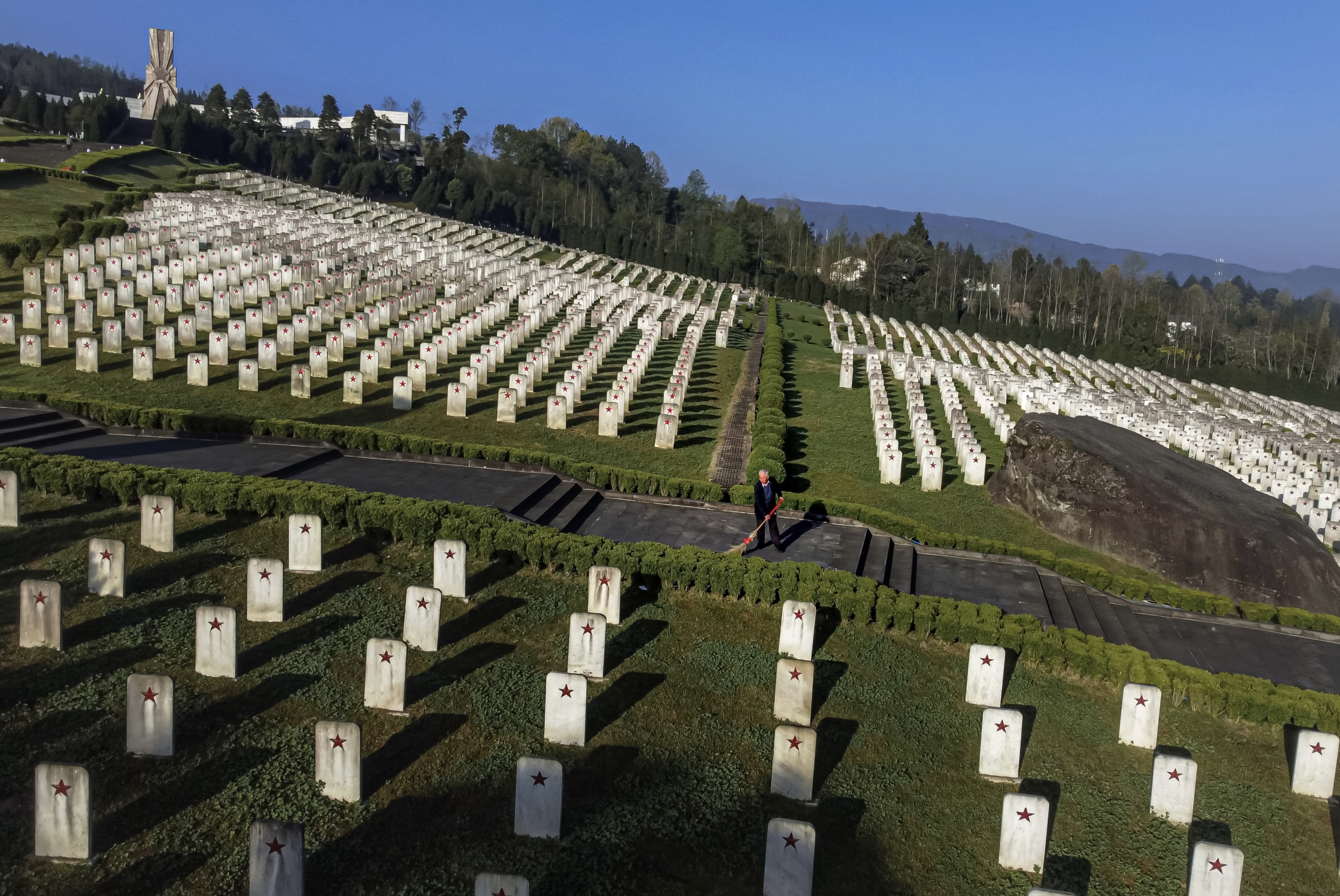 白发苍苍、腿脚不便却要爬上高高的台阶扫墓、除草、擦拭墓碑,这位老人是四川通江县王坪村的村民王建刚,他们一家三代常年义务守护着川陕革命根据地红军烈士陵园里的先烈们。