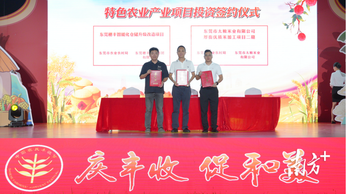活动现场举行了东莞穗丰智能化仓储升级改造项目以及东莞市太粮米业有限公司厚街优质米加工项目二期两项农业投资项目的签约仪式。