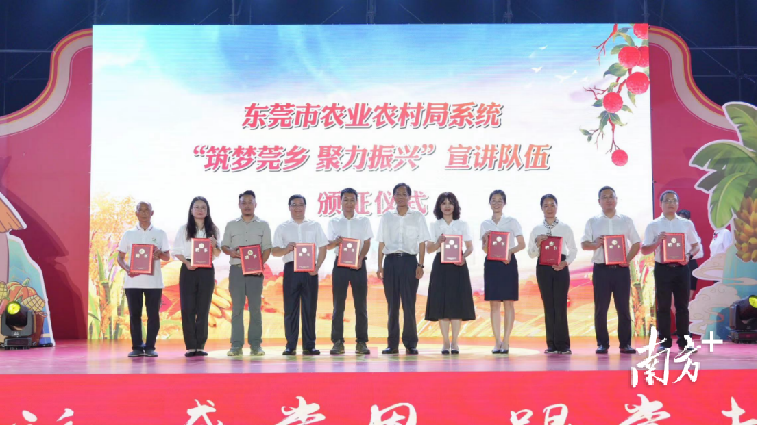东莞农业农村不仅涌现了一支“筑梦莞乡 助力振兴”宣讲队伍,还涌现出了全国农业农村劳动模范。横沥镇隔坑村党委书记、村委会主任吴进芬当选东莞唯一的“全国农业农村劳动模范”。活动现场也为“全国农业农村劳动模范”吴进芬颁发了奖章和荣誉证书。