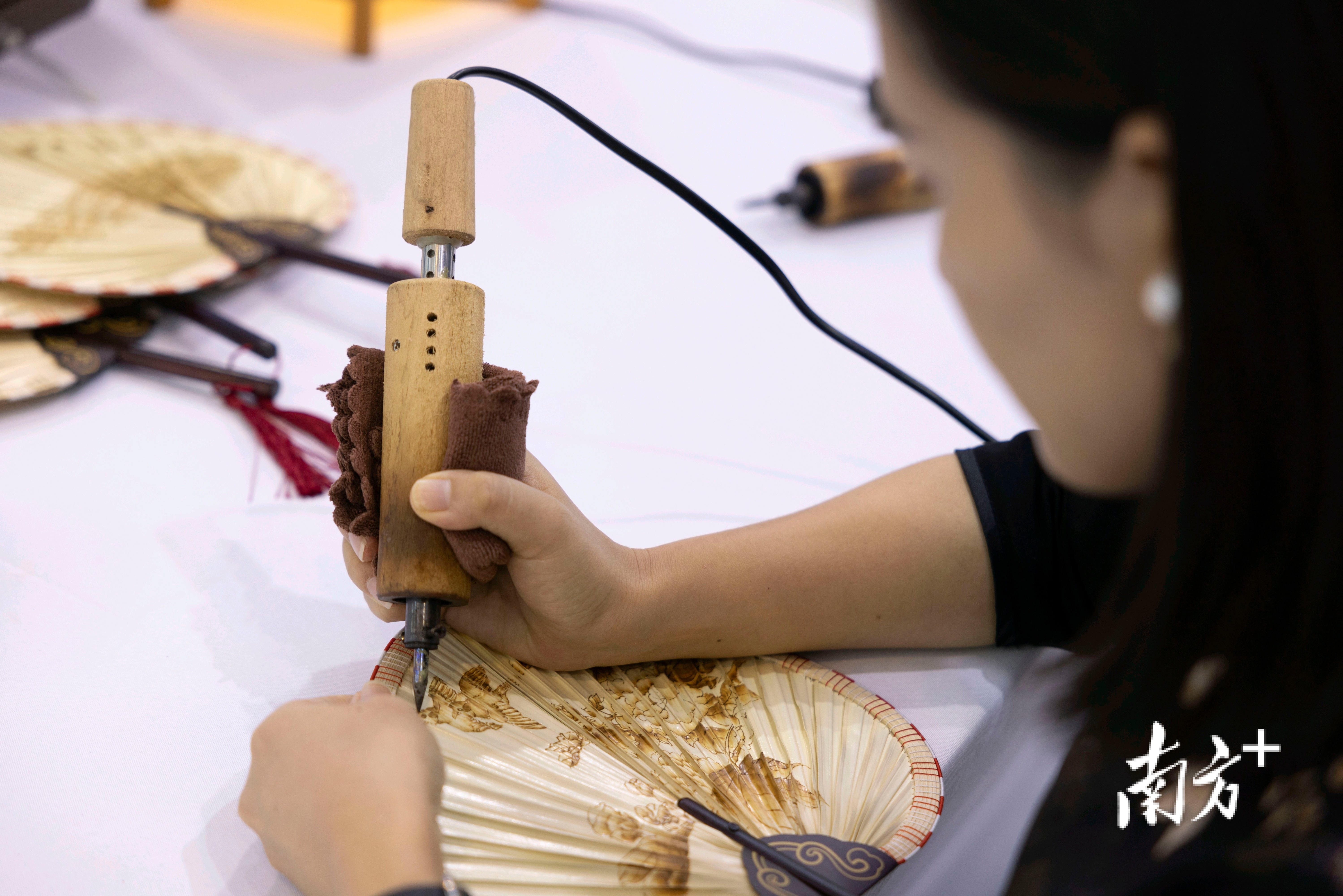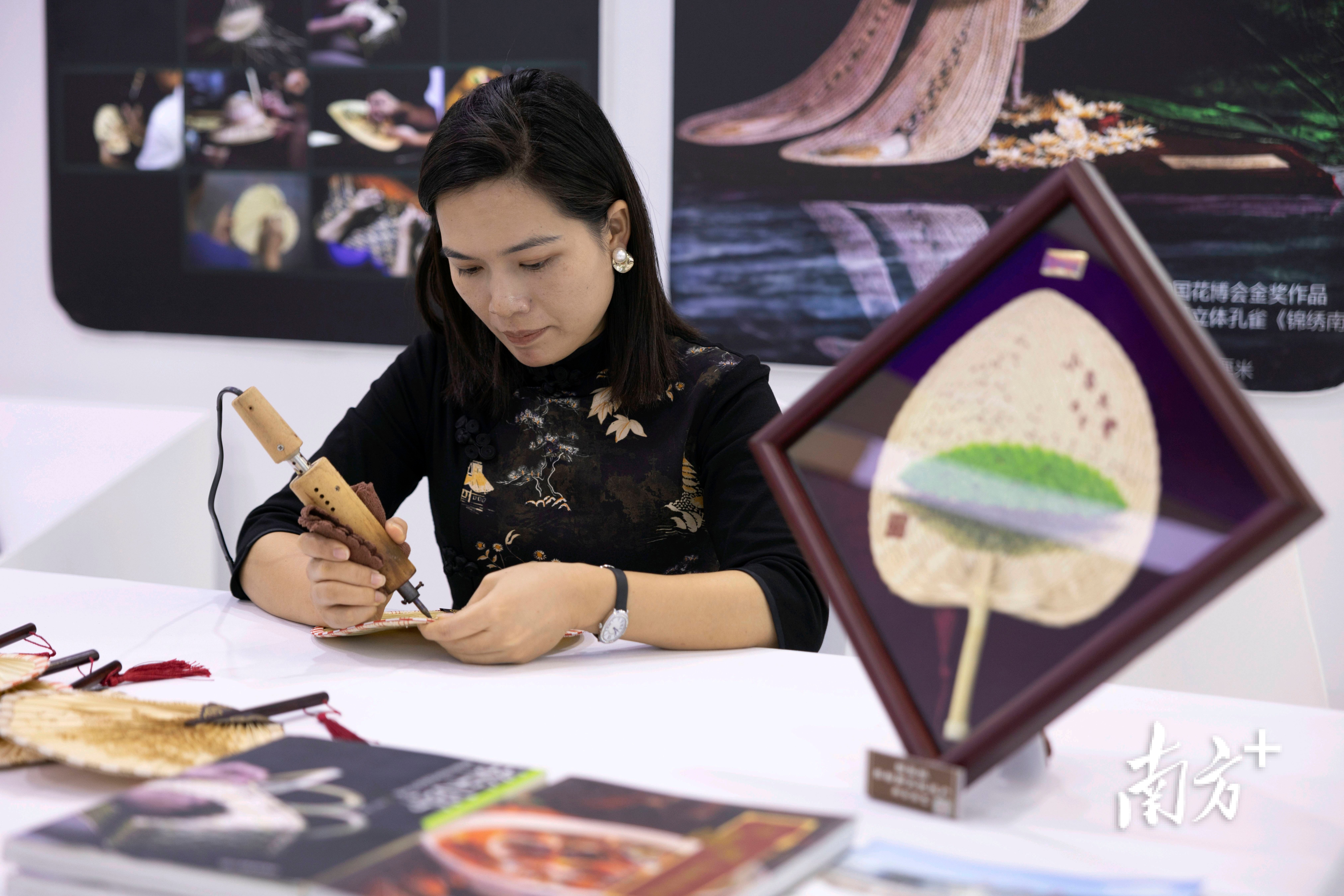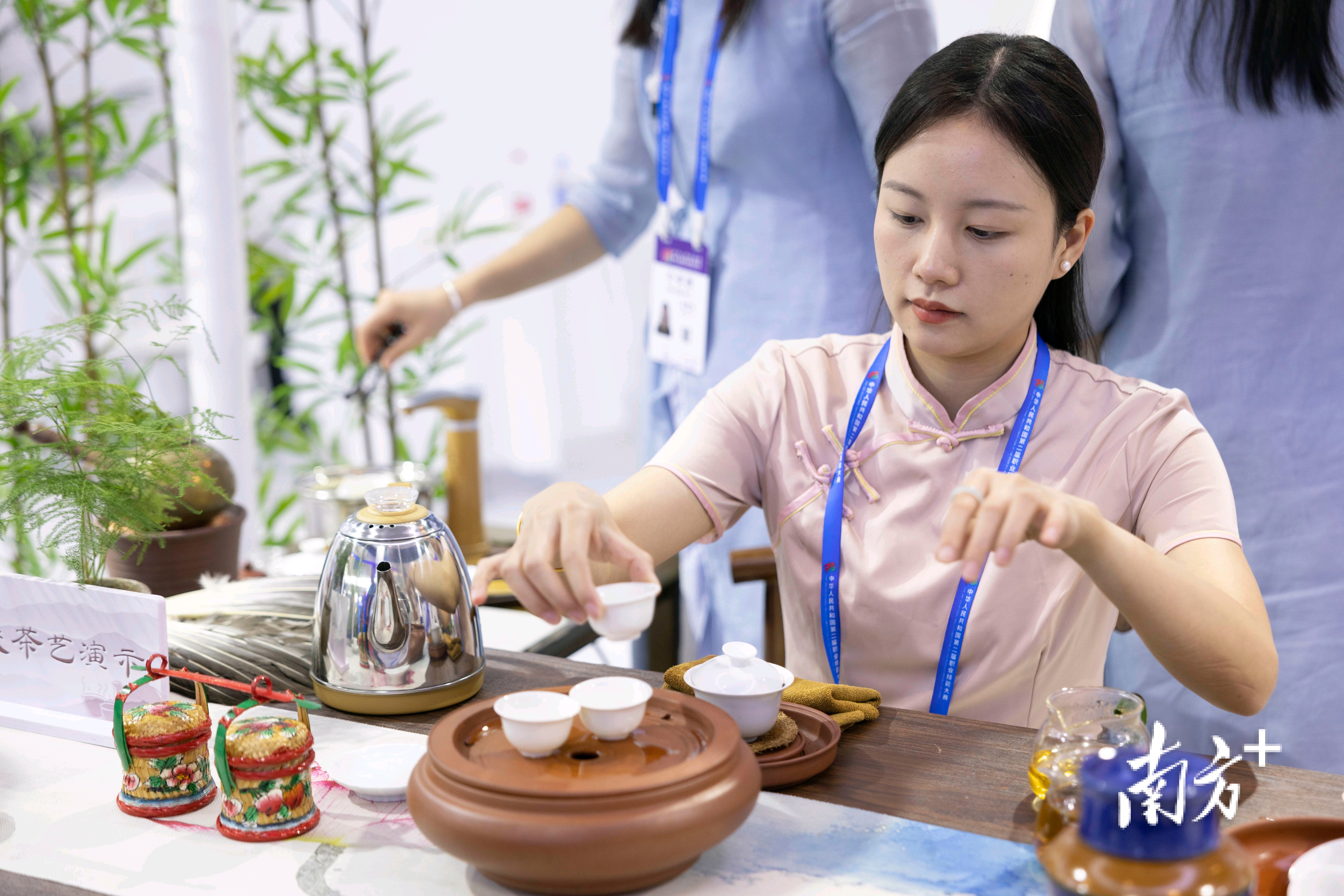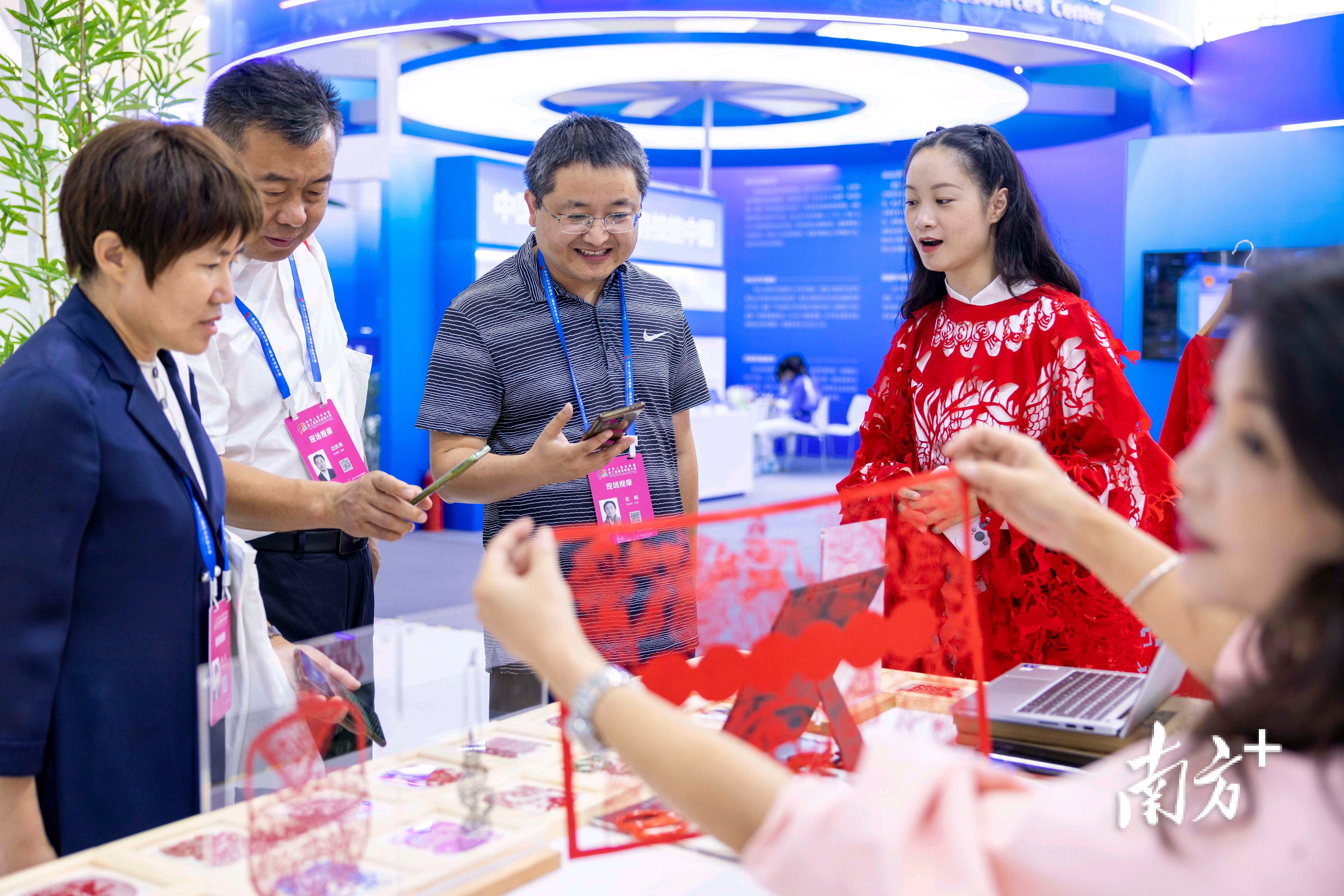 “广东馆很有传统气息,主打一个文化底蕴!”本届大赛设置系列技能展示活动,设国家成果展、各省(区、市)及新疆生产建设兵团、参赛行业部门成果展等多个展区。广东馆是全场唯一一个均以国家级非物质文化遗产为展示项目的展馆,潮阳非遗剪纸、新会葵艺、潮汕工夫茶惊艳亮相,引来不少人驻足赏看品鉴。