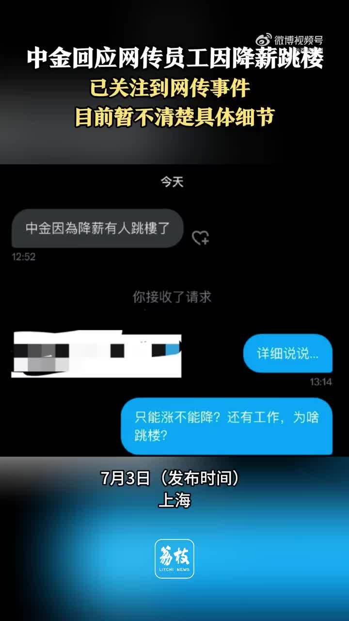 中金回应网传员工因降薪跳楼:已关注到网传事件 具体细节等待后续公司回应