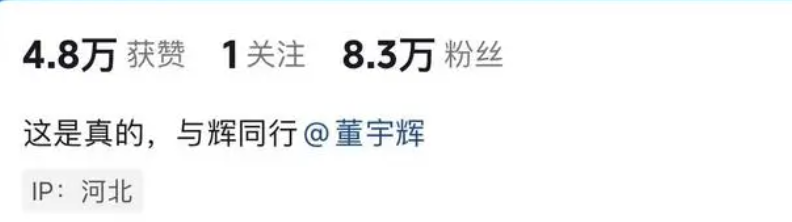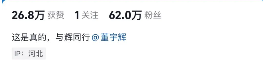 该账号IP地址显示为河北,有网友质疑账号的真实性。似乎是为了回应网友的疑虑,该账号的个人简介中写着“这是真的,与辉同行@董宇辉。”