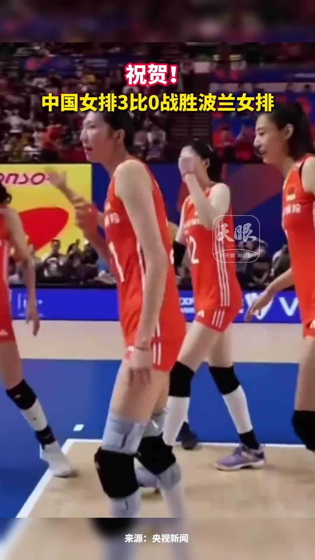 祝贺! 中国女排3比0战胜波兰女排