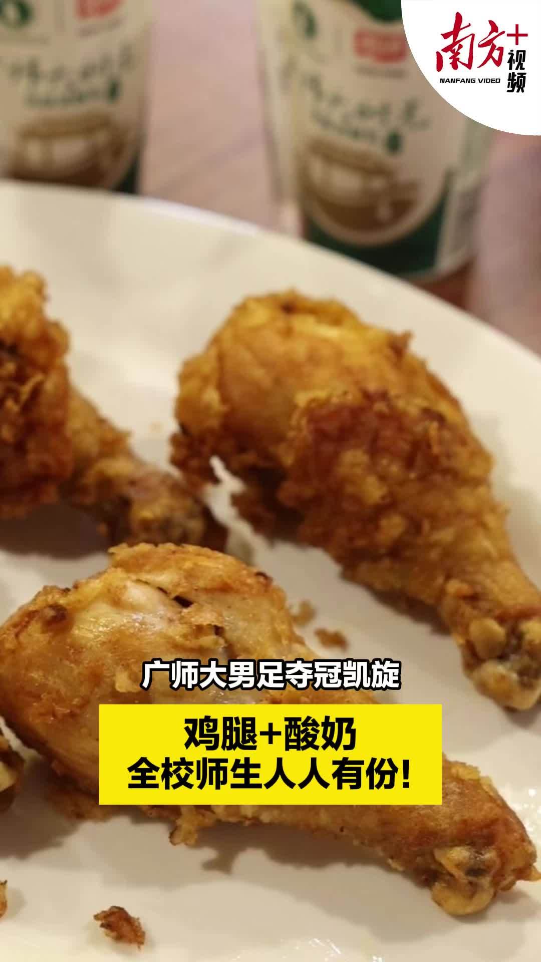 广师大男足夺冠凯旋 鸡腿+酸奶全校师生人人有份
