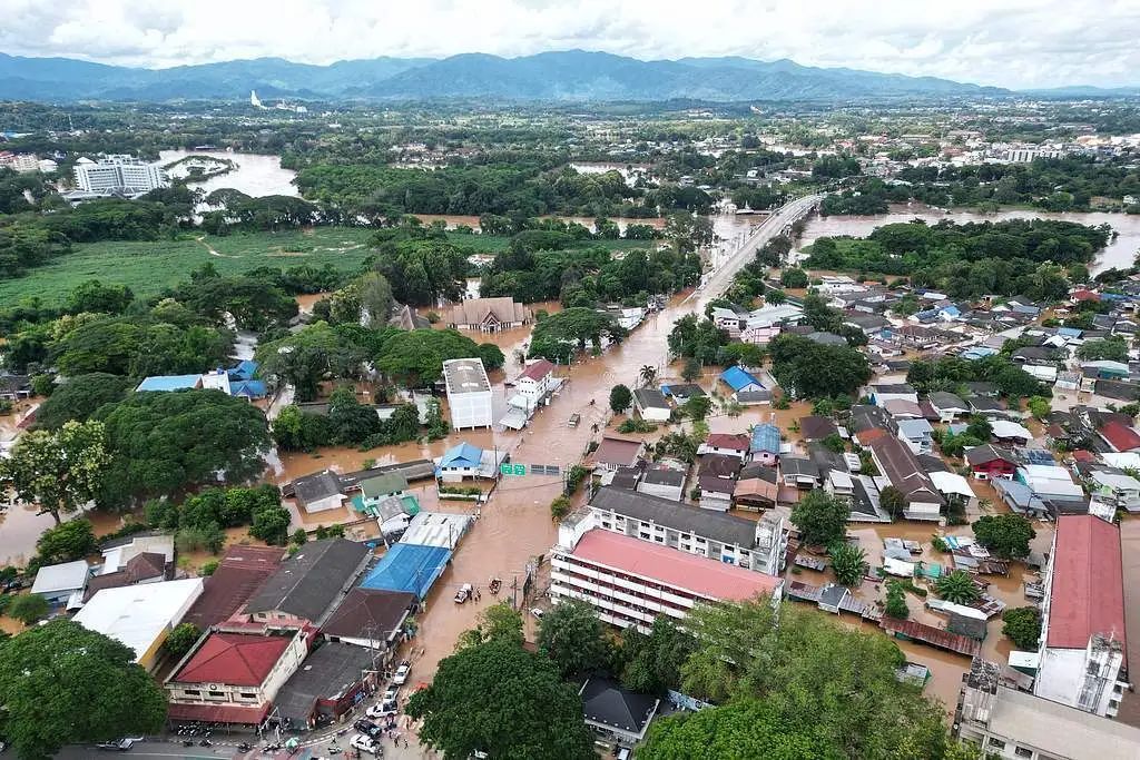近期清迈多个地区发生洪水,清迈市区的萍河水位持续上涨,水流急促,已冲倒设置的沙袋,导致多个区域被淹没。当地居民反映,这种情况在多年中从未见过。