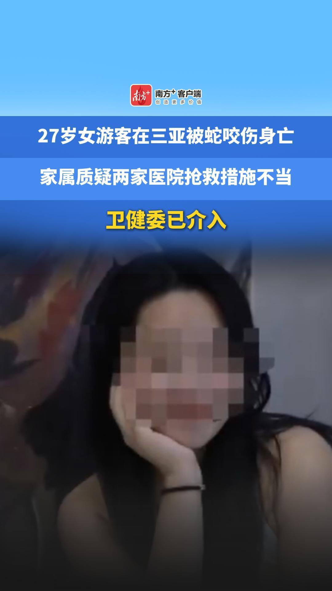 27岁女游客在三亚被蛇咬伤身亡,家属质疑两家医院抢救措施不当,卫健委已介入,