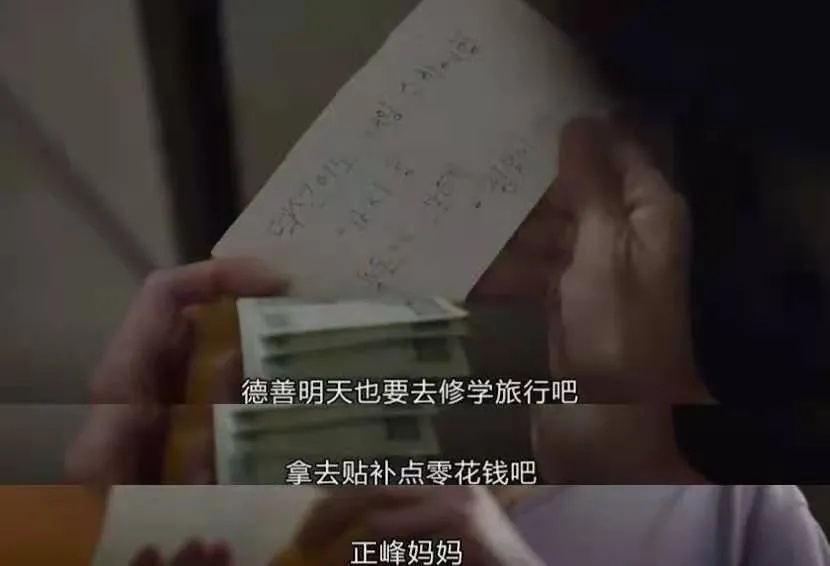 其中有场戏是这样的:德善妈妈手头拮据,为了让德善过一个体面的休学旅行,她找到阔绰的正焕妈妈,想跟对方借钱,结果碍于“旧债未还”,最终未能张口。正焕妈妈起初没明白这一点,忽然想到后,顾忌到德善妈妈的面子,她打着送玉米的幌子,给对方送去了钱,并把装钱的信封藏在玉米里。尽管正焕妈妈没多说什么,但却让故事流露出浓浓的情谊,令人感怀。
