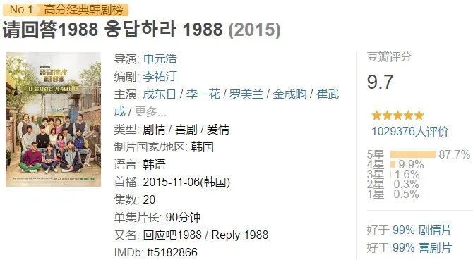 面对这个问题,相信大家会给出不同的答案。但在豆瓣,网友们却通过投票选出了一部作品——位列“高分经典韩剧榜No.1”的《请回答1988》。