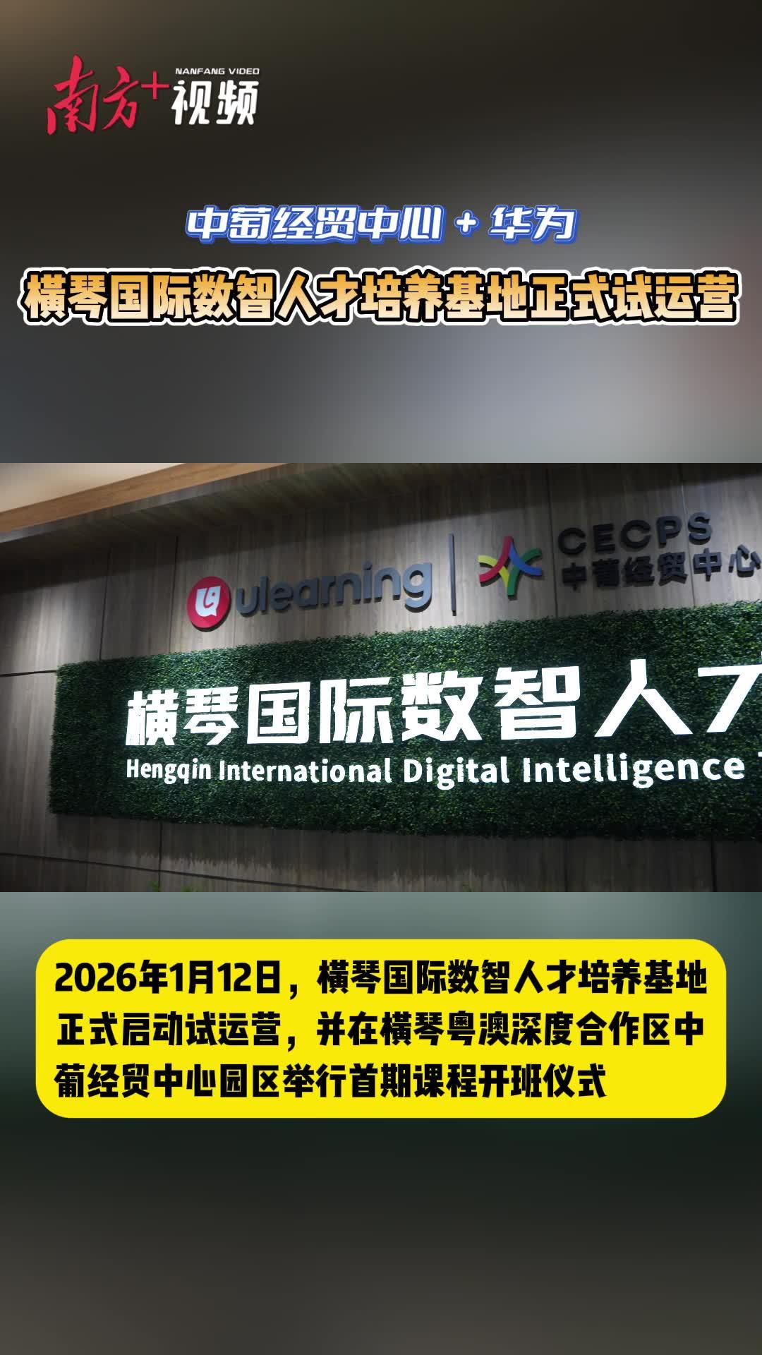 中葡经贸中心+华为!横琴国际数智人才培养基地试运营