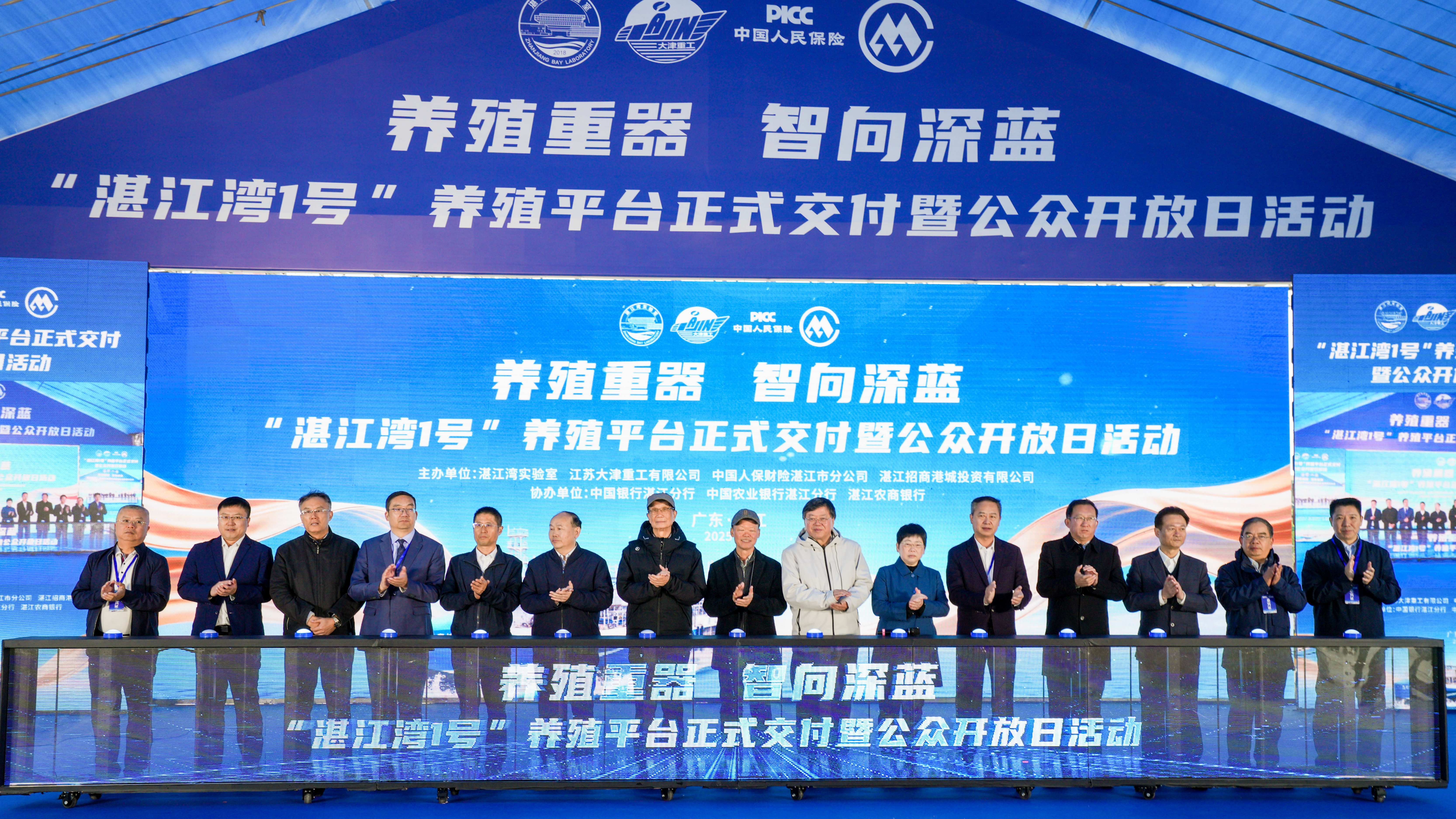 碧海浮光,泛起千层浪,养殖重器正启航。在交付仪式上,建造方大津重工向湛江湾实验室转交“湛江湾1号”的养殖平台操控钥匙,意味着这一艘全球首创漂浮式动力定位网箱型平台正式迈向深蓝海域。