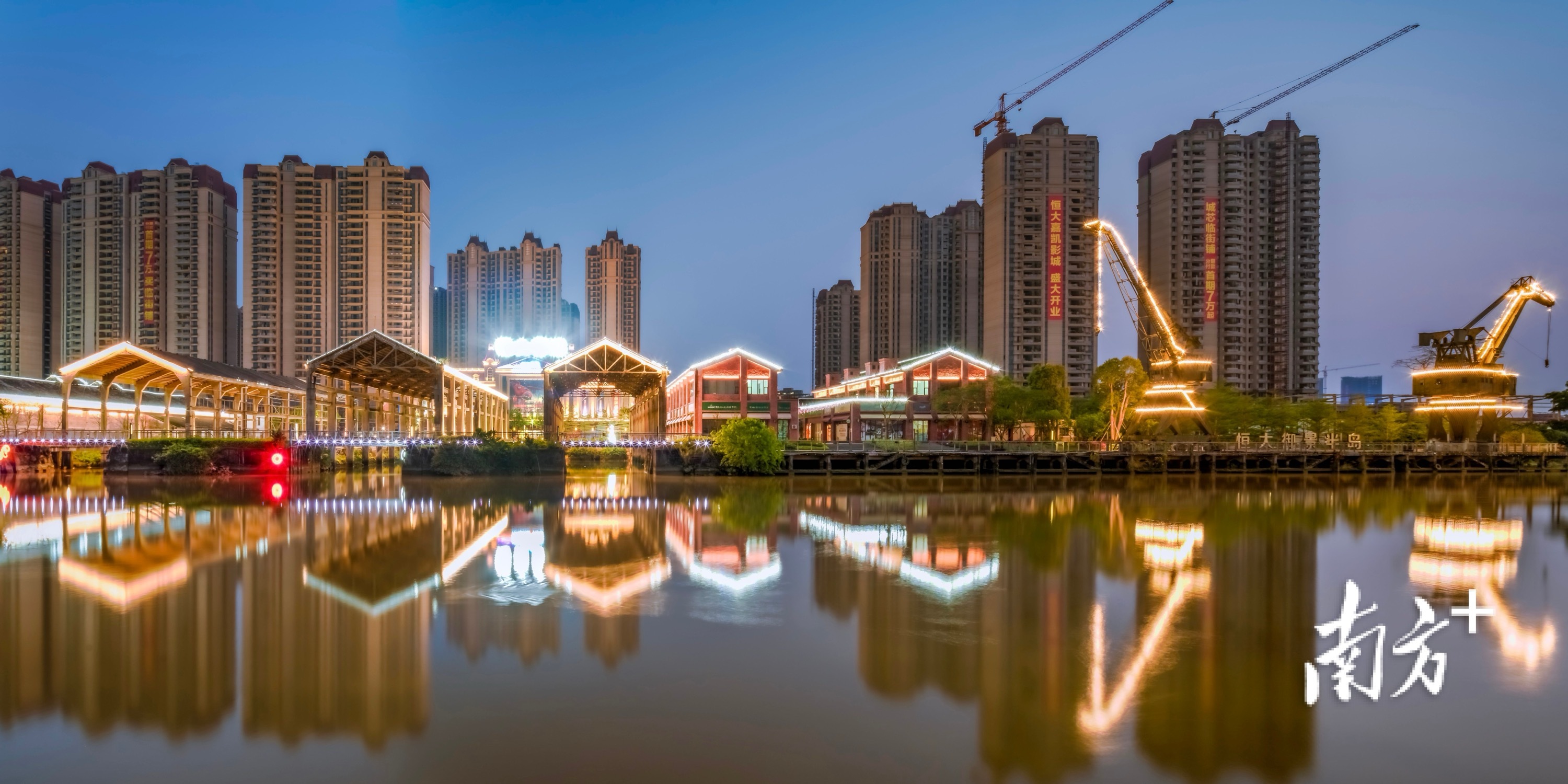 傍晚时分,江门老船厂仿佛一瞬间被灯光点亮。 李样尊 摄