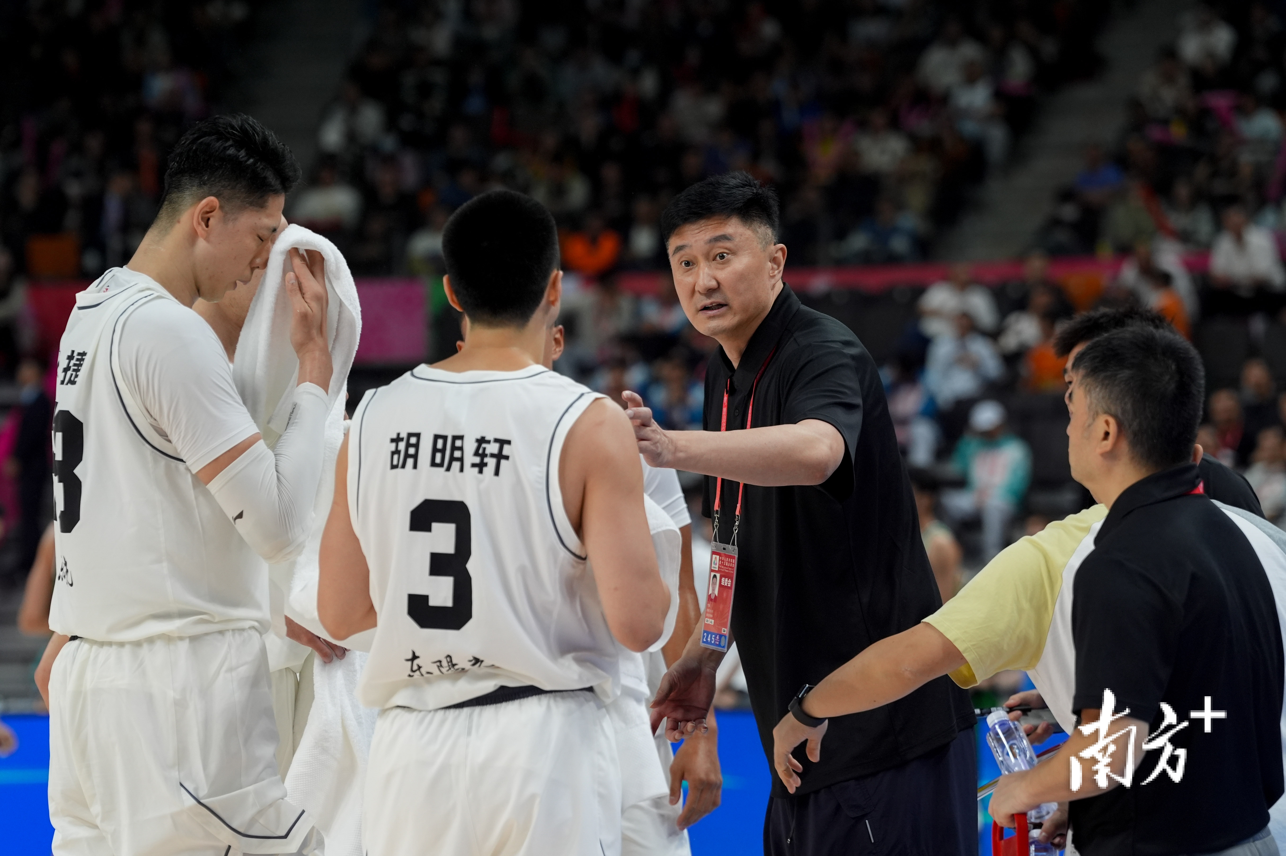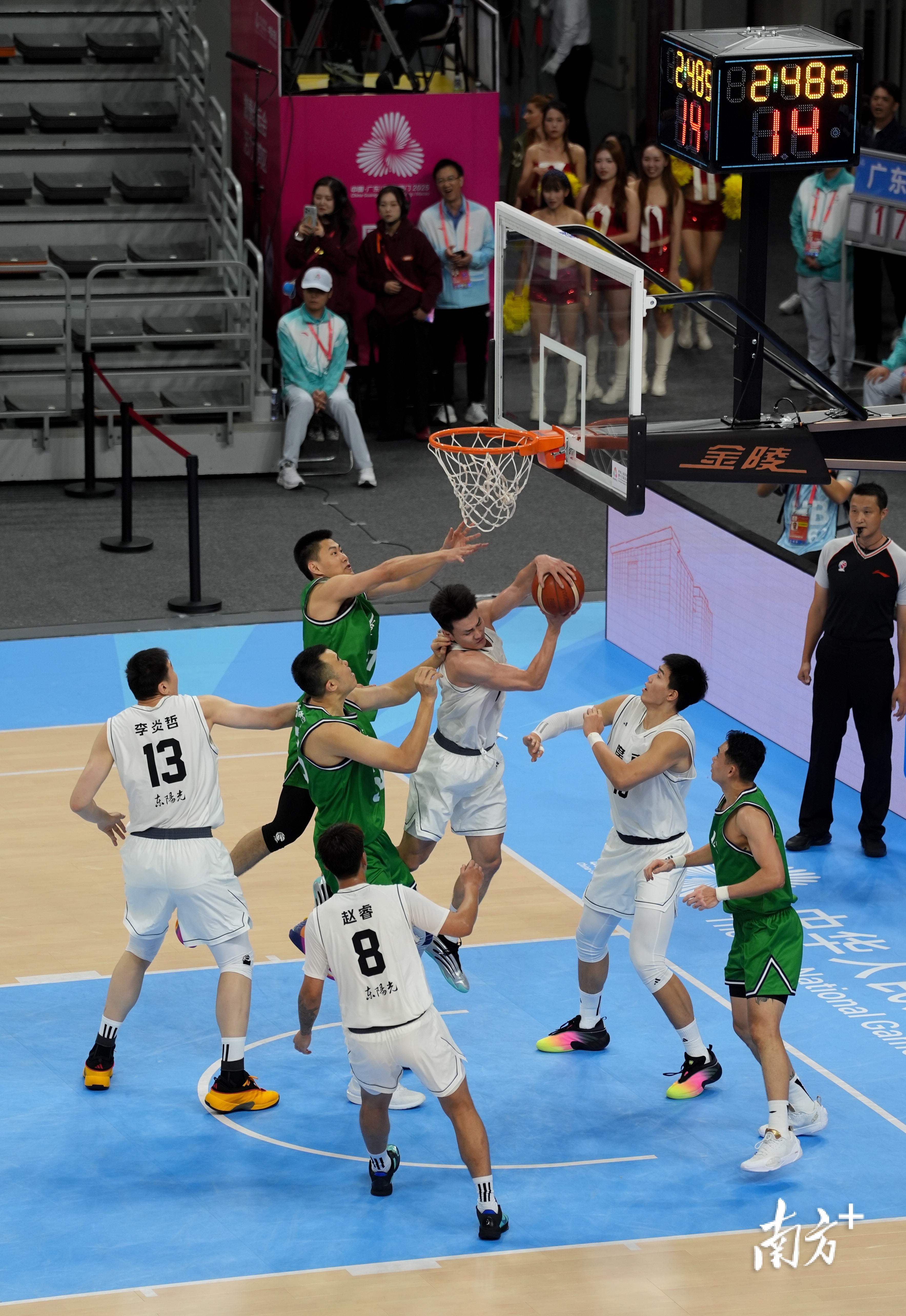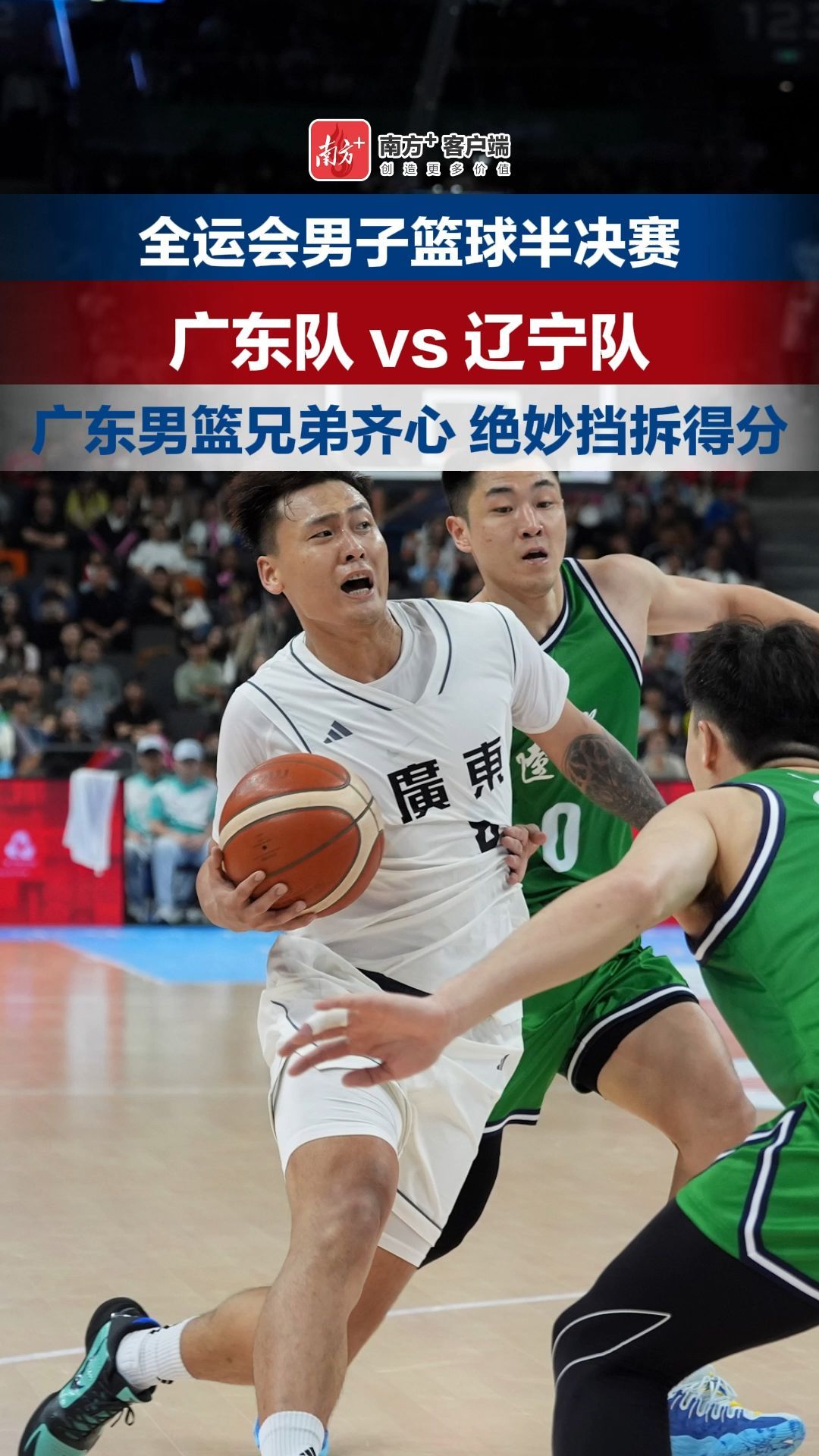 11月11日,全国运动会男子篮球赛半决赛,广东男篮对阵辽宁男篮。开场辽宁依靠高诗岩咬住比分,随后广东队赵睿领衔多点开花,迅速领先两位数,首节结束赵继伟因大腿拉伤退赛。