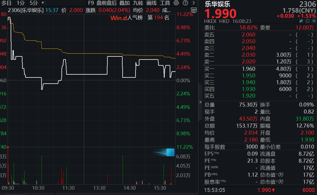 按乐华娱乐(02306.HK)3月26日收盘股价1.990港元计算,该笔股份奖励的市值约为2487万港元。