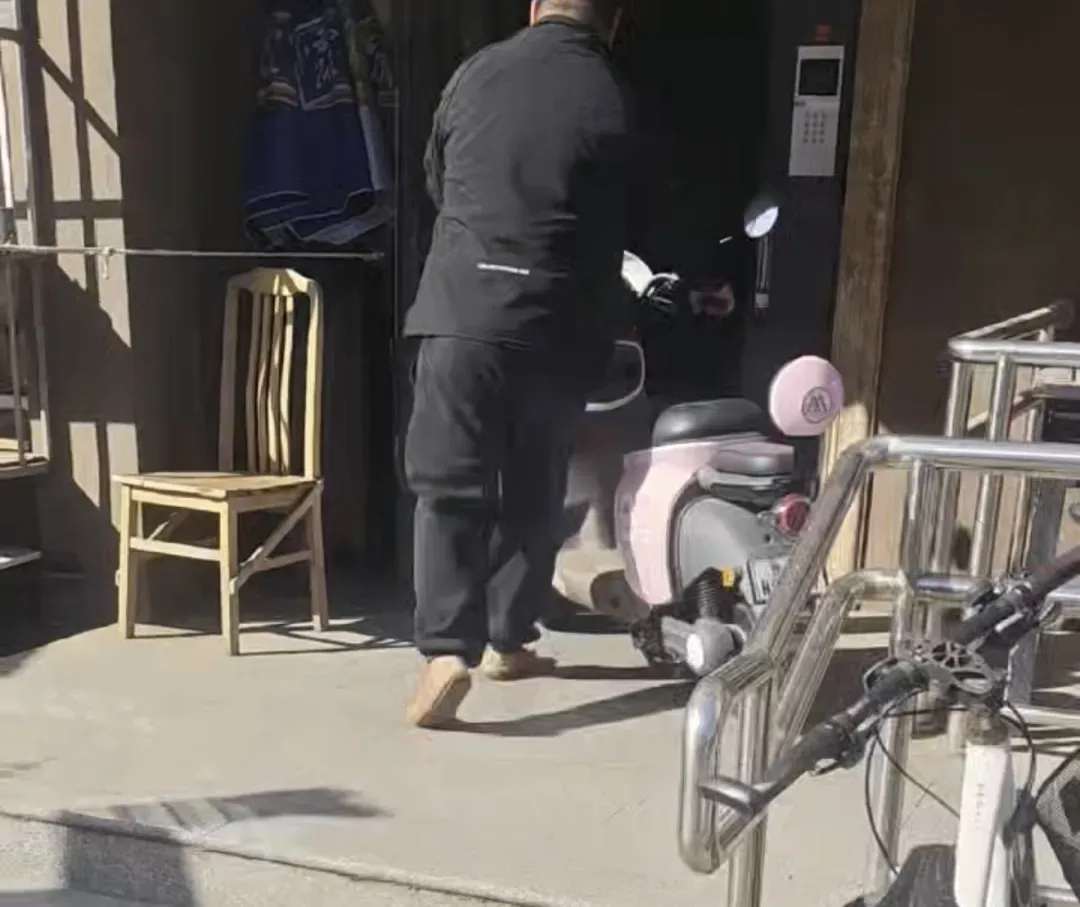 车主拒不整改,将电动自行车重新推回楼内。