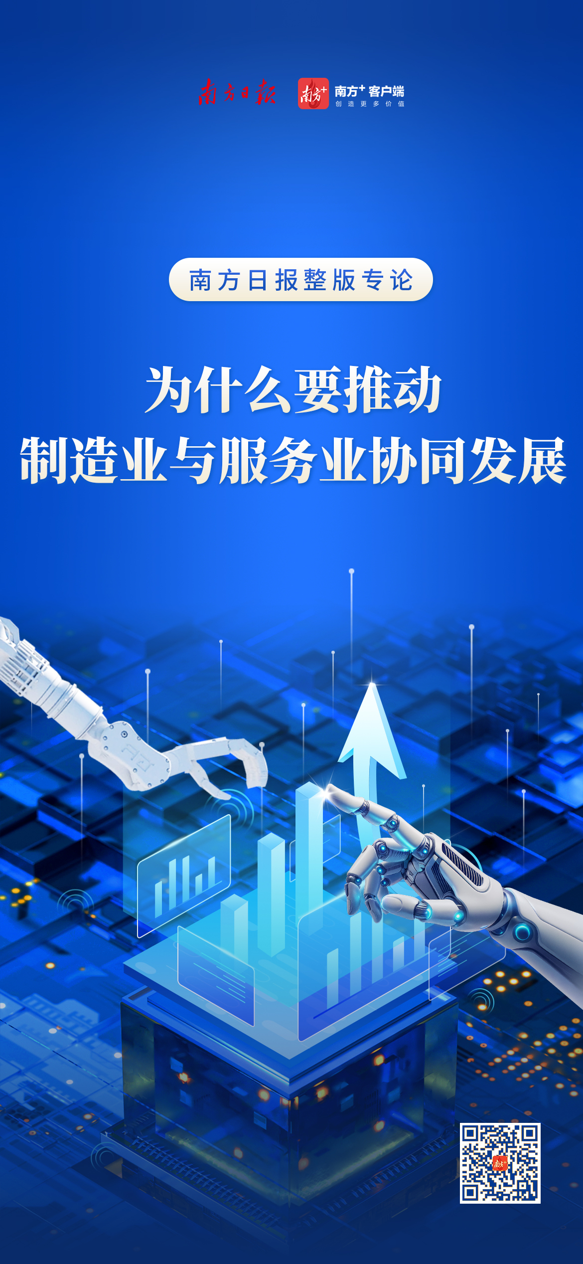 “十五五”规划建议提出,“发展智能制造、绿色制造、服务型制造”,“提高现代服务业与先进制造业、现代农业融合发展水平”,为推动制造业与服务业协同发展、构建现代化产业体系指明了方向。新征程上,广东需要从理念引领、主体培育和载体建设等多维度持续发力、整体推进。